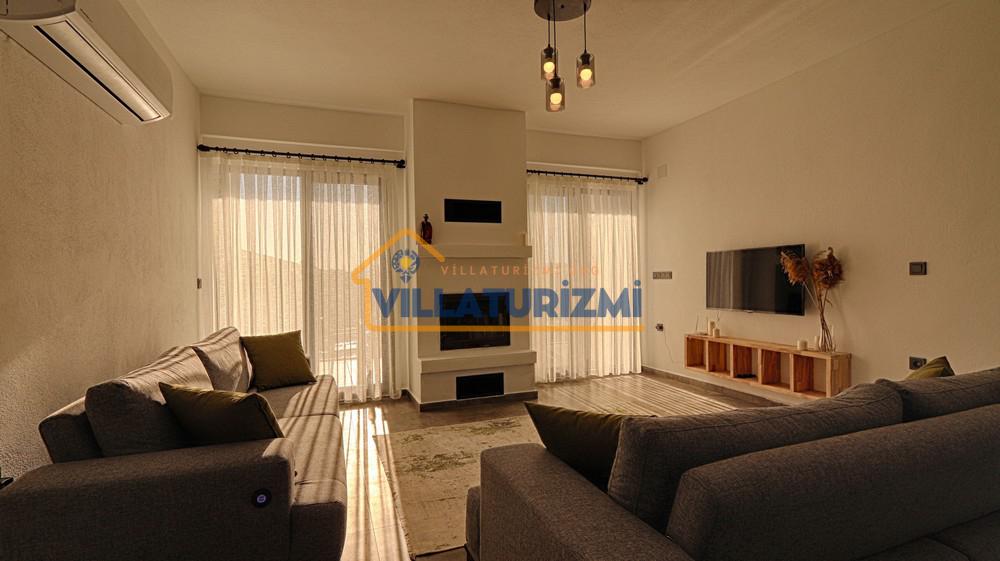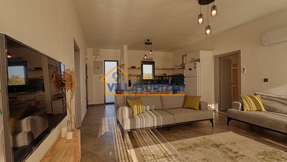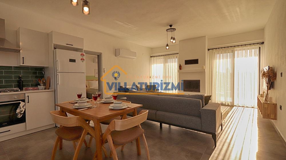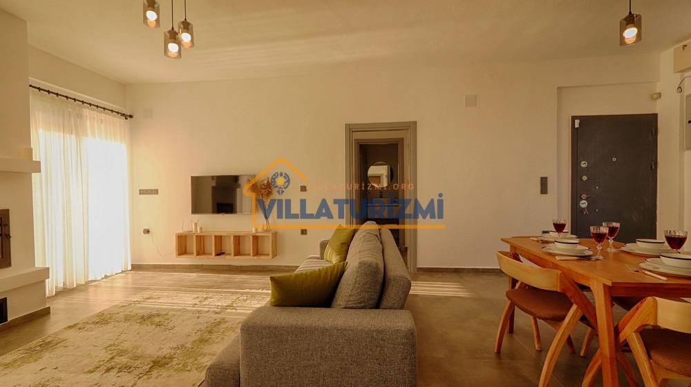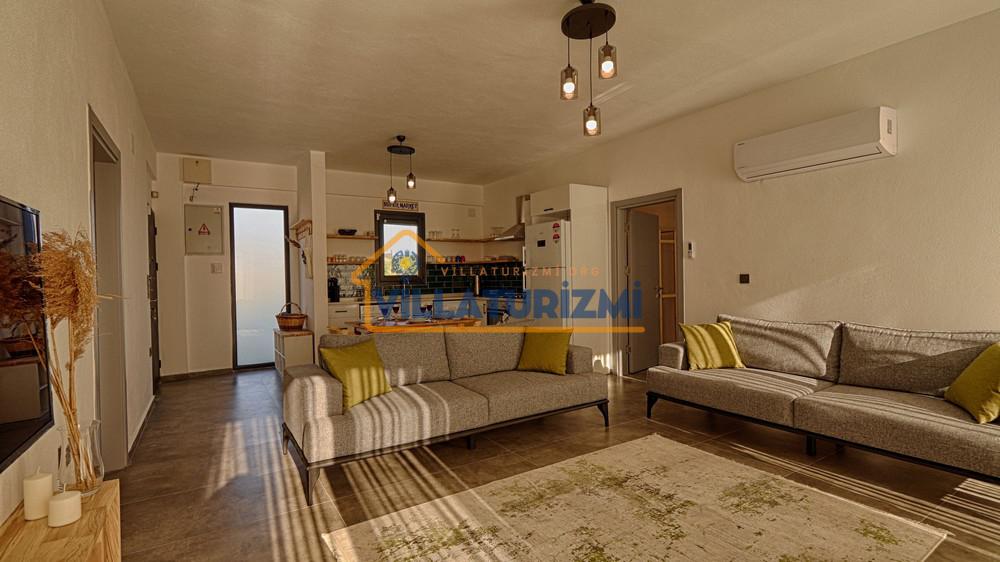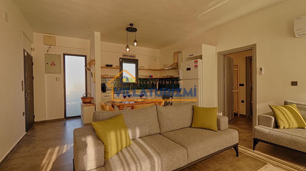 Salon, Mutfak :salonunda oturma grubu, televizyon, uydu alıcı, Modern Amerikan tarzı mutfağımızda buzdolabı, bulaşık makinesi, çamaşır makinesi, tost makinesi, elektrikli su ısıtıcı, ankastre 4'lü ocak, klima, yemek masası, gerekli tüm mutfak araç ve gereçleri bulunmaktadır.