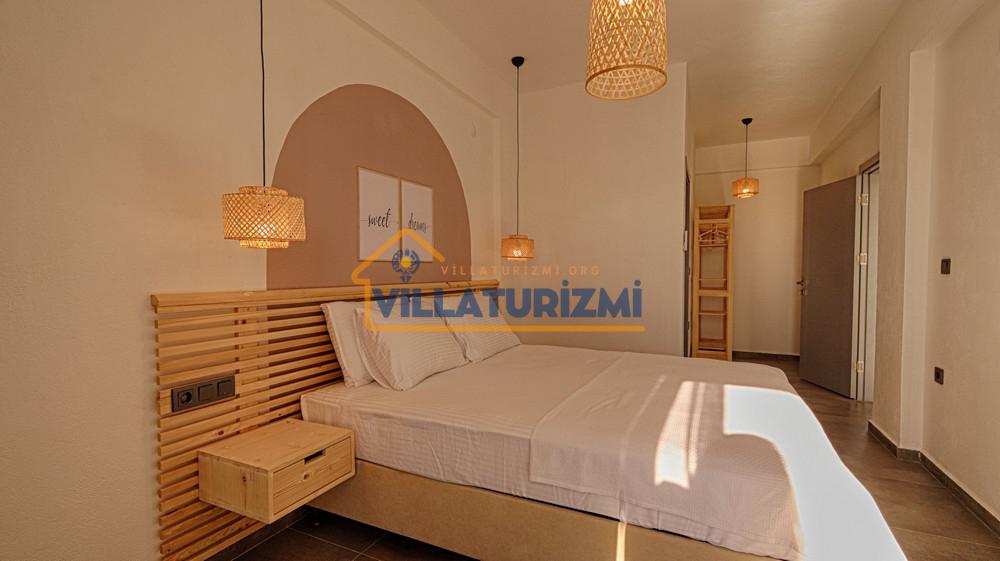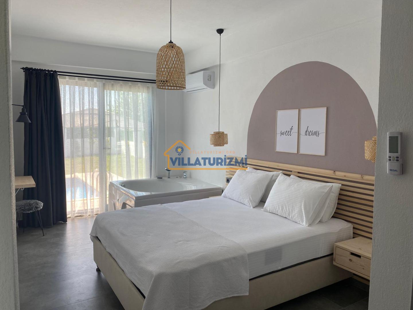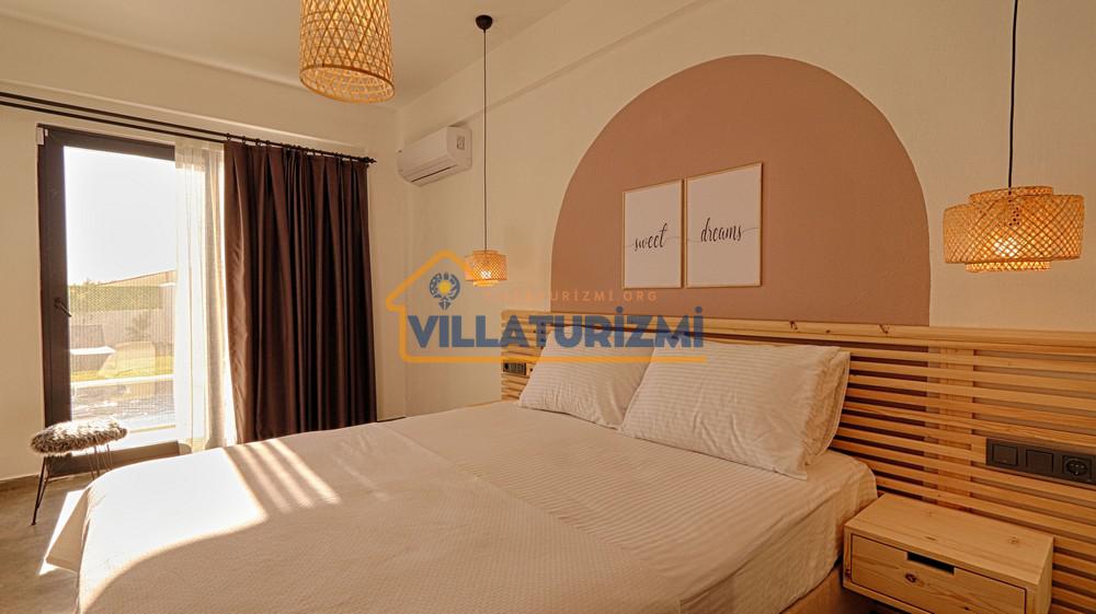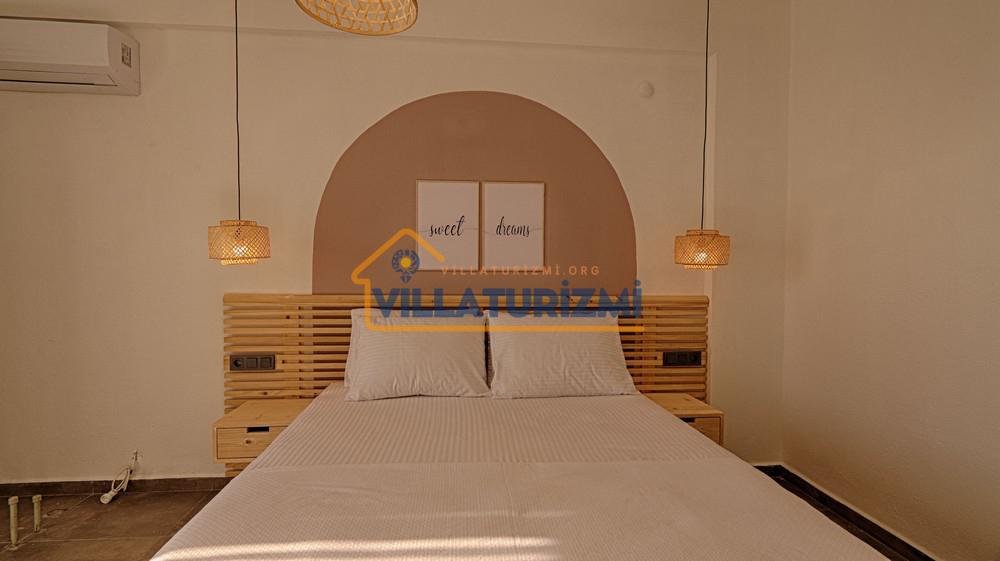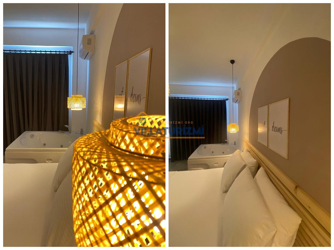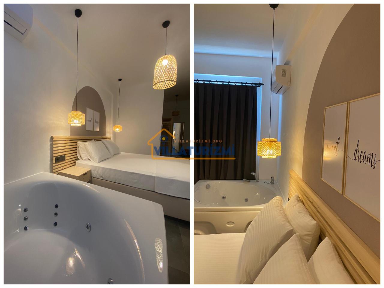1. Yatak Odası : 1 adet çift kişilik yatak, elbise dolabı, makyaj masası, komodin, klima, jakuzi, banyo ve tuvalet bulunmaktadır.