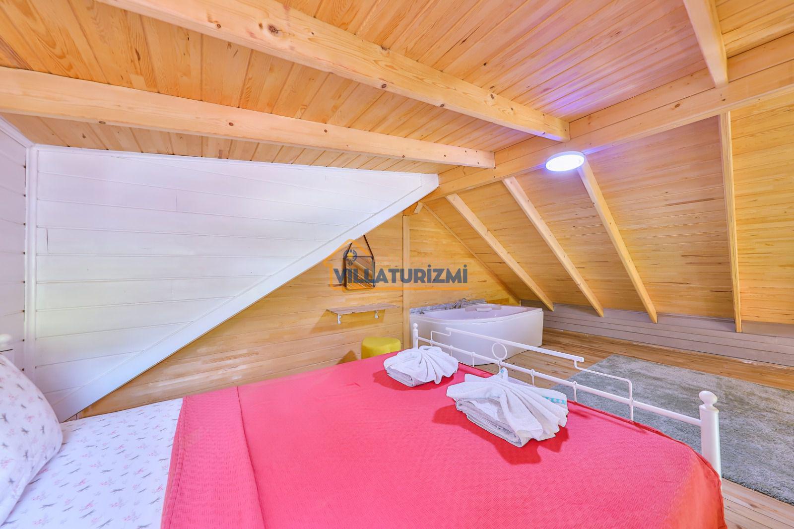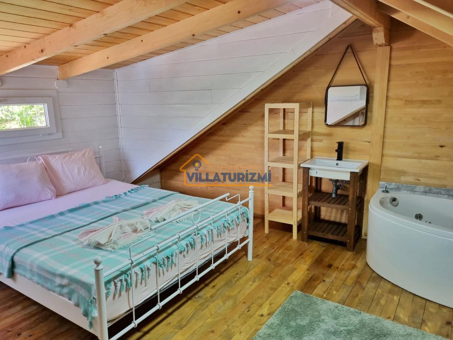 1.Yatak odası : 1 adet çift kişilik yatak, elbise dolabı, saç kurutma makinası, klima bulunmaktadır. Bu odamızda balayı çiftleri için özel bir jakuzimizde bulunmaktadır.