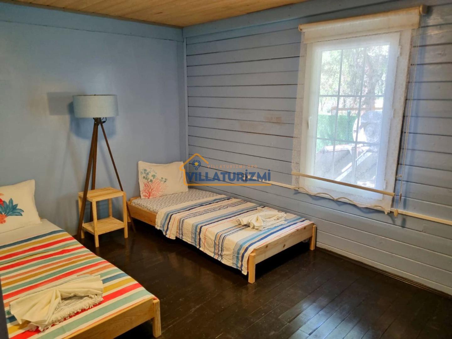 Villa Yakut Planı: tatil villamız, iki yatak odalı olup 4 kişi konaklama kapasitelidir. Yatak odalarında 1 çift kişilik yatak ve 2 tek kişilik yatak bulunmaktadır.