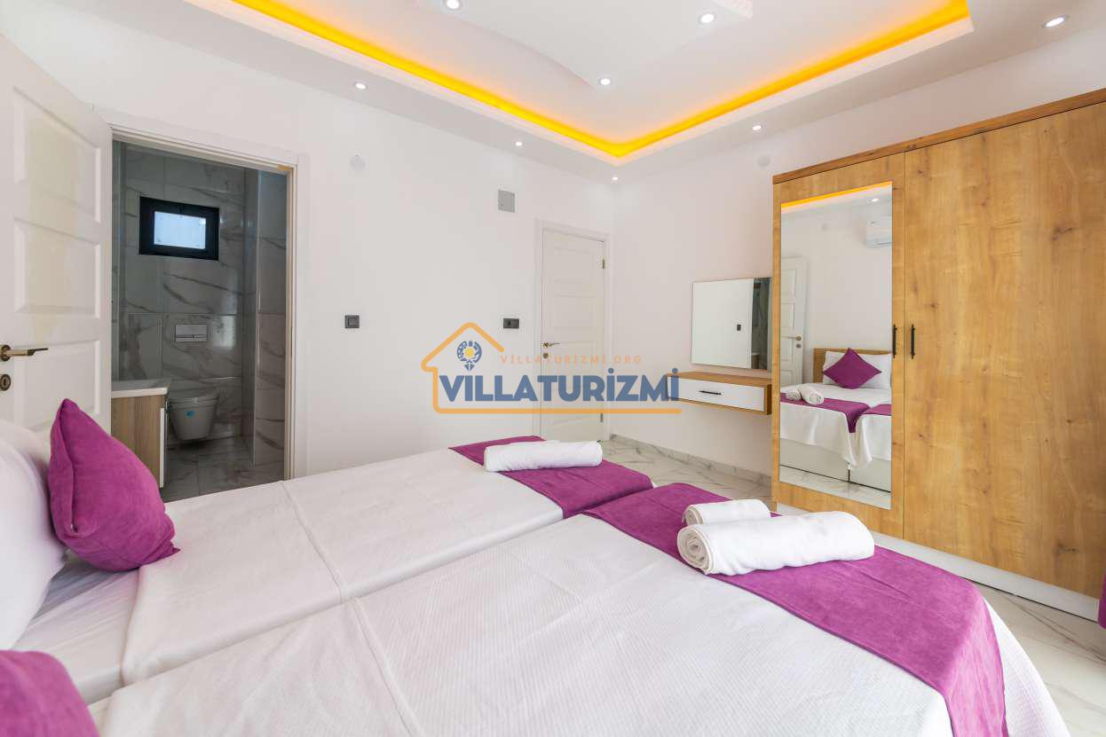 Villa Planı: villamız,1’i ensüit 2 yatak odasına sahip olup 4 kişi konaklama kapasitelidir. Suit yatak odasında jakuzide bulunmaktadır. 2 yatak odasında 1 çift kişilik ve 2 tek kişilik yatak bulunmaktadır.