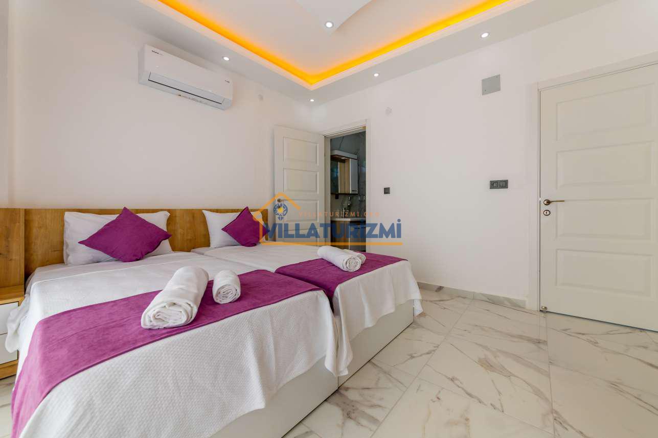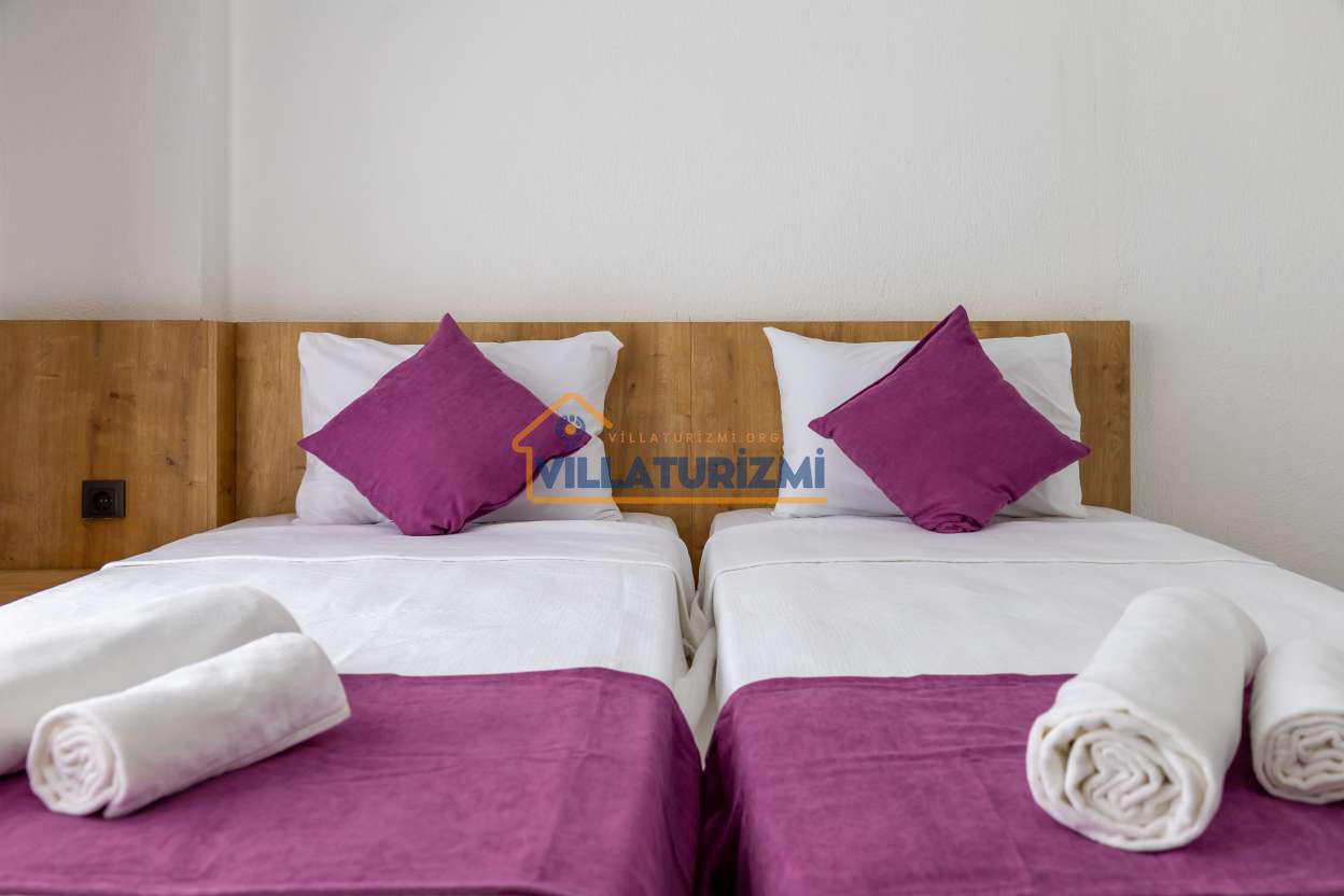 2. Yatak Odası:2 adet tek kişilik yatak, klima, elbise dolabı, komodin, makyaj masası, banyo ve tuvalet bulunmaktadır.