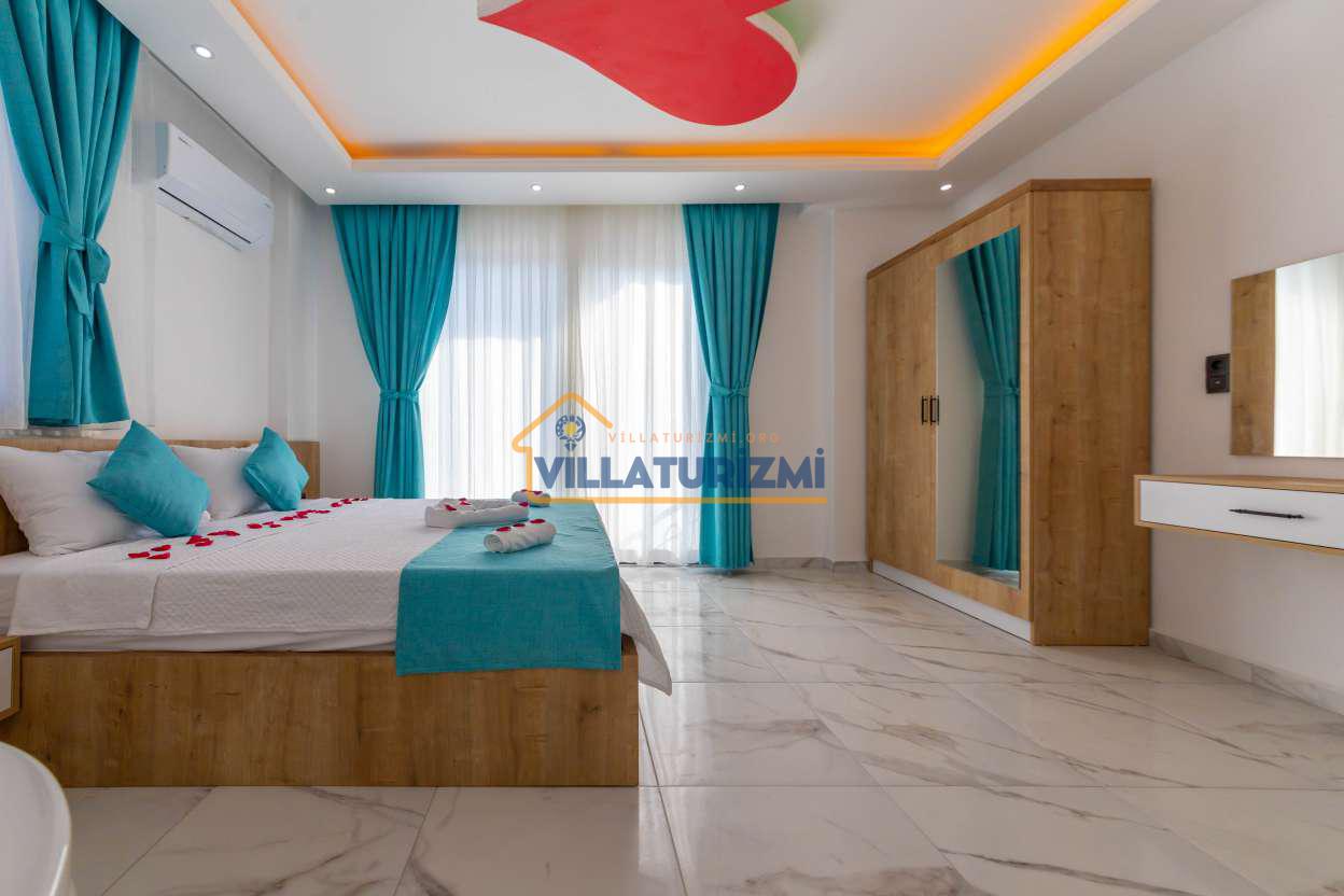 1. Yatak Odası:Çift kişilik yatak, klima, komodin, jakuzi, elbise dolabı, makyaj masası, banyo ve tuvalet bulunmaktadır.