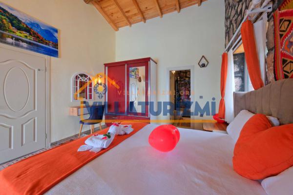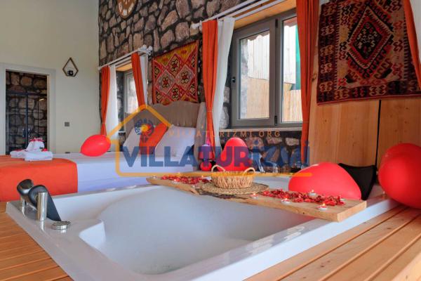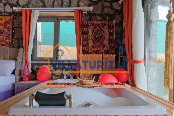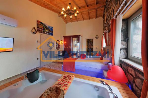 1. Yatak Odası: 1 adet çift kişilik yatak, elbise dolabı, makyaj masası, komodin, klima, jakuzi, banyo ve tuvalet bulunmaktadır.