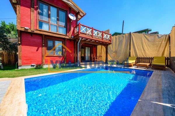 Özellikler: Özel açık yüzme havuzu, güneşlenme alanı, şezlonglar, özel bahçe, özel park yeri ve mangal alanı.