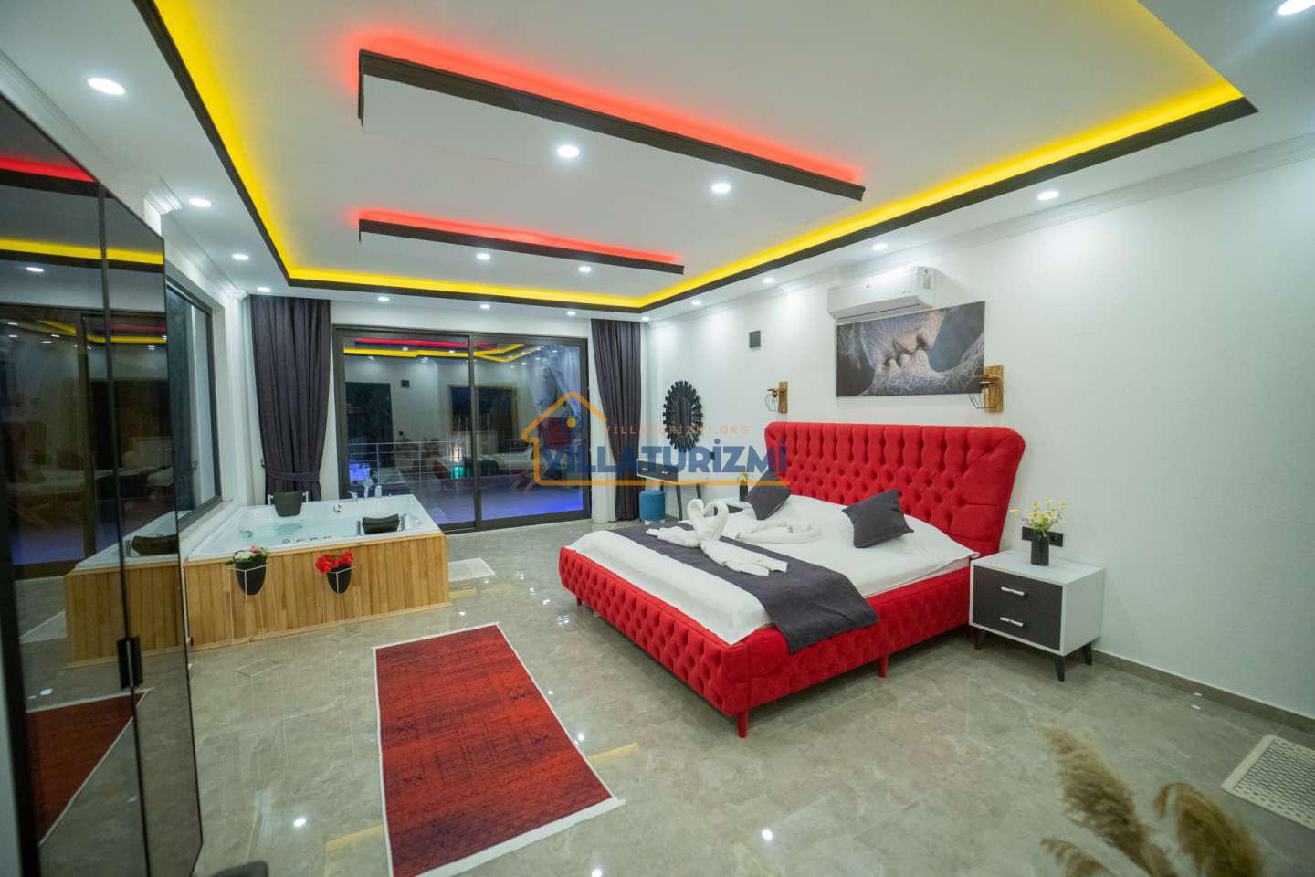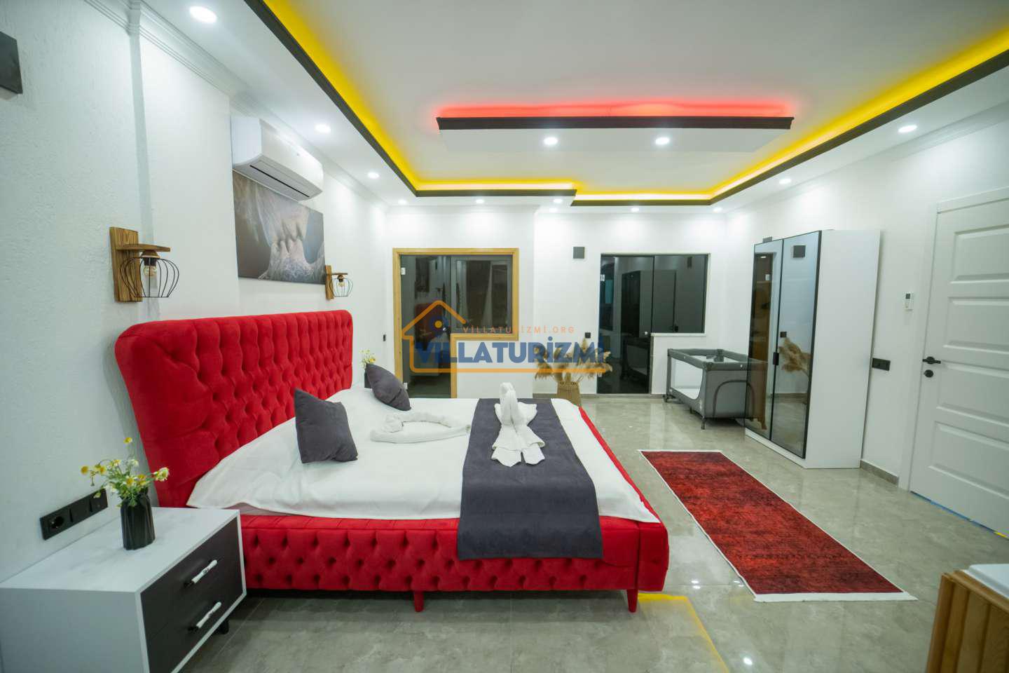 1.Yatak odası : 1 çift kişilik yatak , banyo , tuvalet , elbise dolabı , klima , komodin ve jakuzi bulunmaktadır.