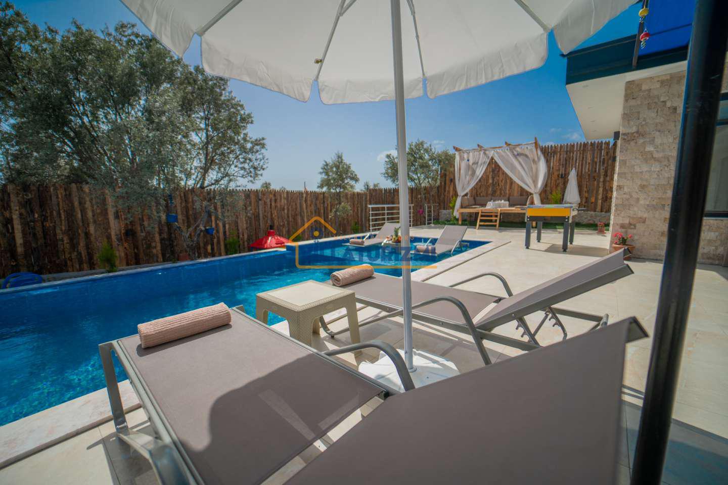 Kiralık Villa Aslanbey, Kalkan Kınık'ta huzurlu, konforlu ve özel bir tatil deneyimi arayan misafirler için mükemmel bir seçenektir. Özel korunaklı havuzu, geniş bahçesi, çocuk oyun alanı, sauna, langırt gibi çeşitli fonksiyonel özelliklerinin yanı sıra, 4 kişiye kadar konaklama imkanı ve ebeveyn odasındaki jakuzi ile misafirlerine unutulmaz bir tatil deneyimi sunmaktadır.