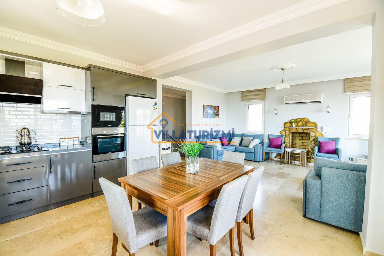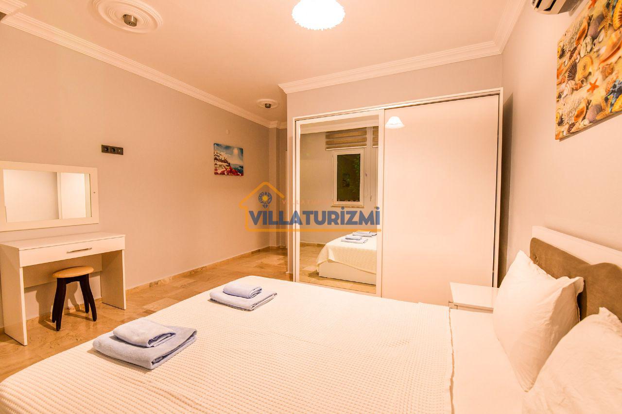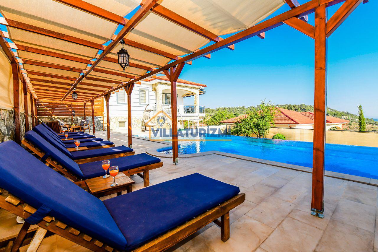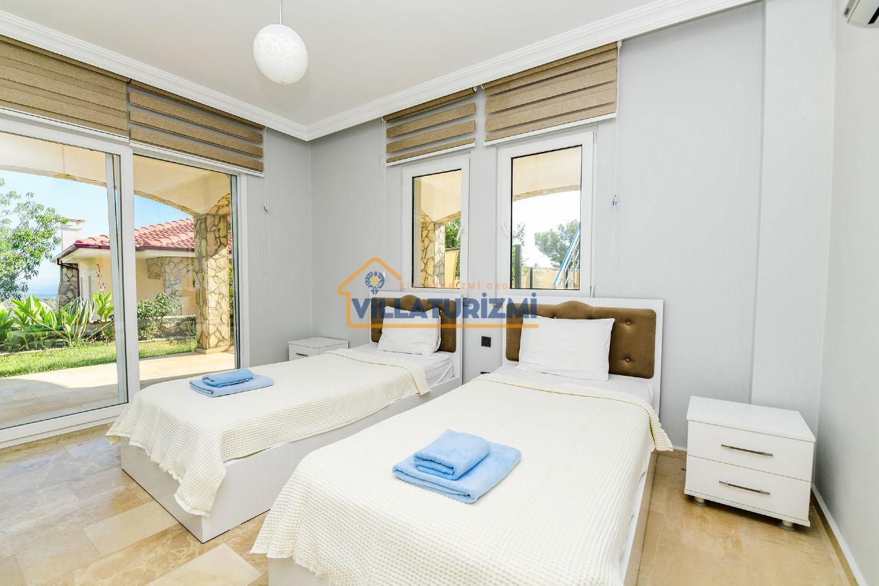 Toplamda 4 odası bulunan villamızın tüm odaları ferah, yüksek standartlarda dizayn edilmiş olup, tüm odalardan panaromik deniz manzarası mevcuttur.