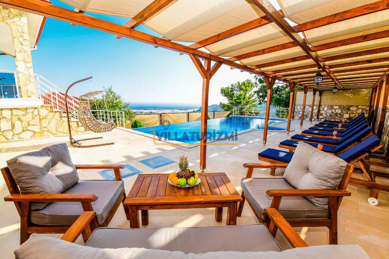 Patara Plajı'na tepeden bakan ve yüksek bir konumda inşa edilmiş olan Villa Bellevue, nefes kesen eşsiz manzarası ile tatilinizi unutulmaz kılacak.