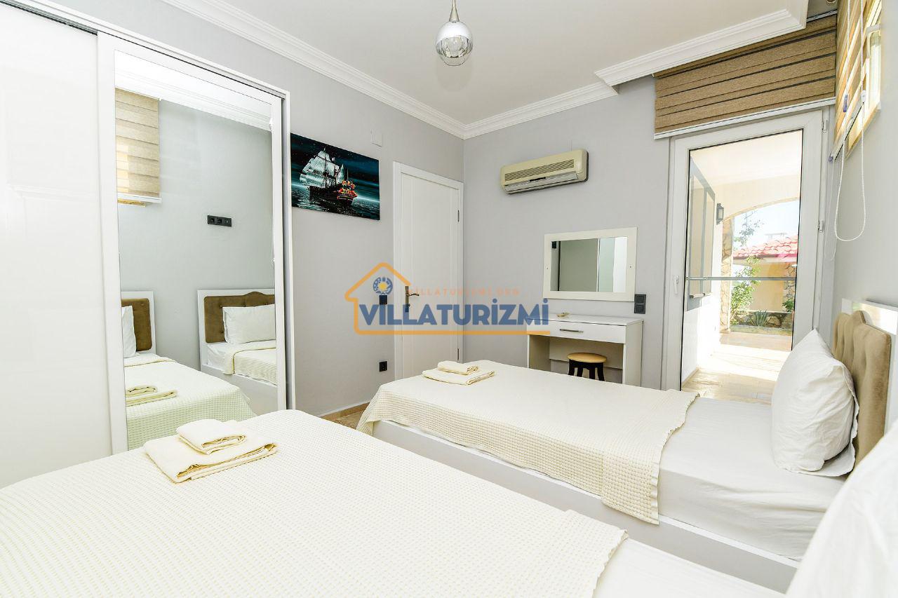2. Yatak Odası: 2 adet tek kişilik yatak, elbise dolabı, makyaj masası ve klima yer almaktadır.