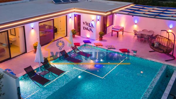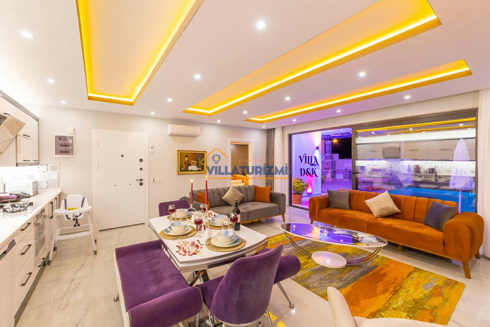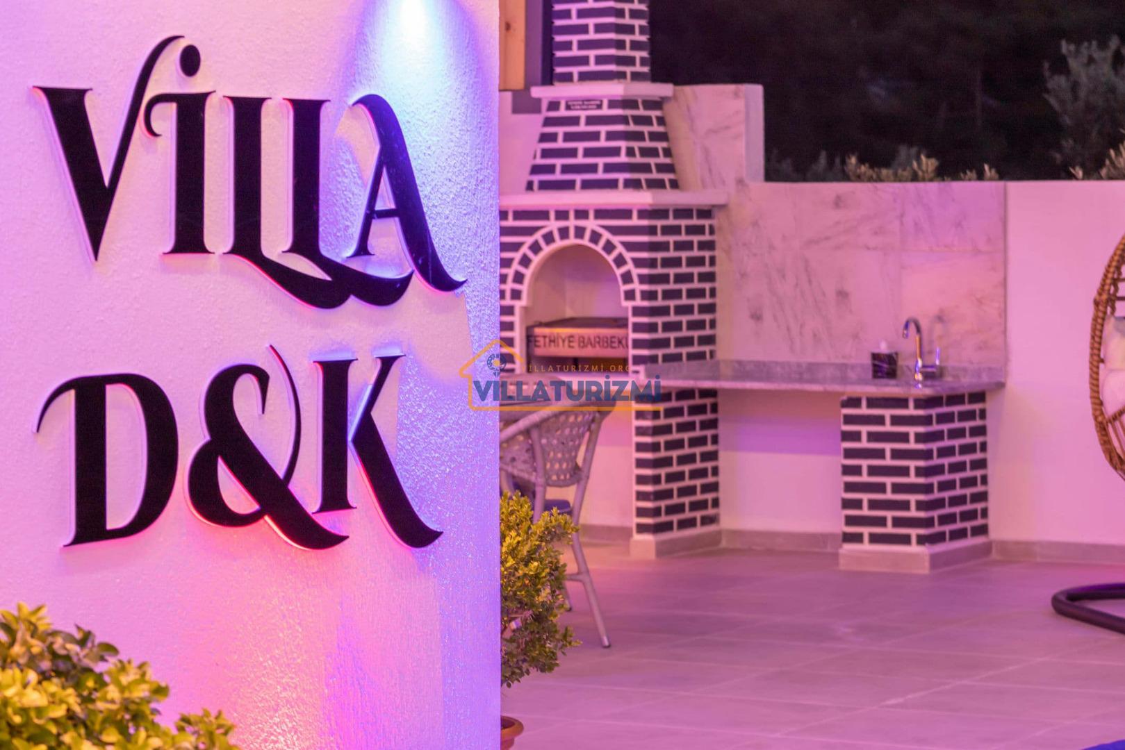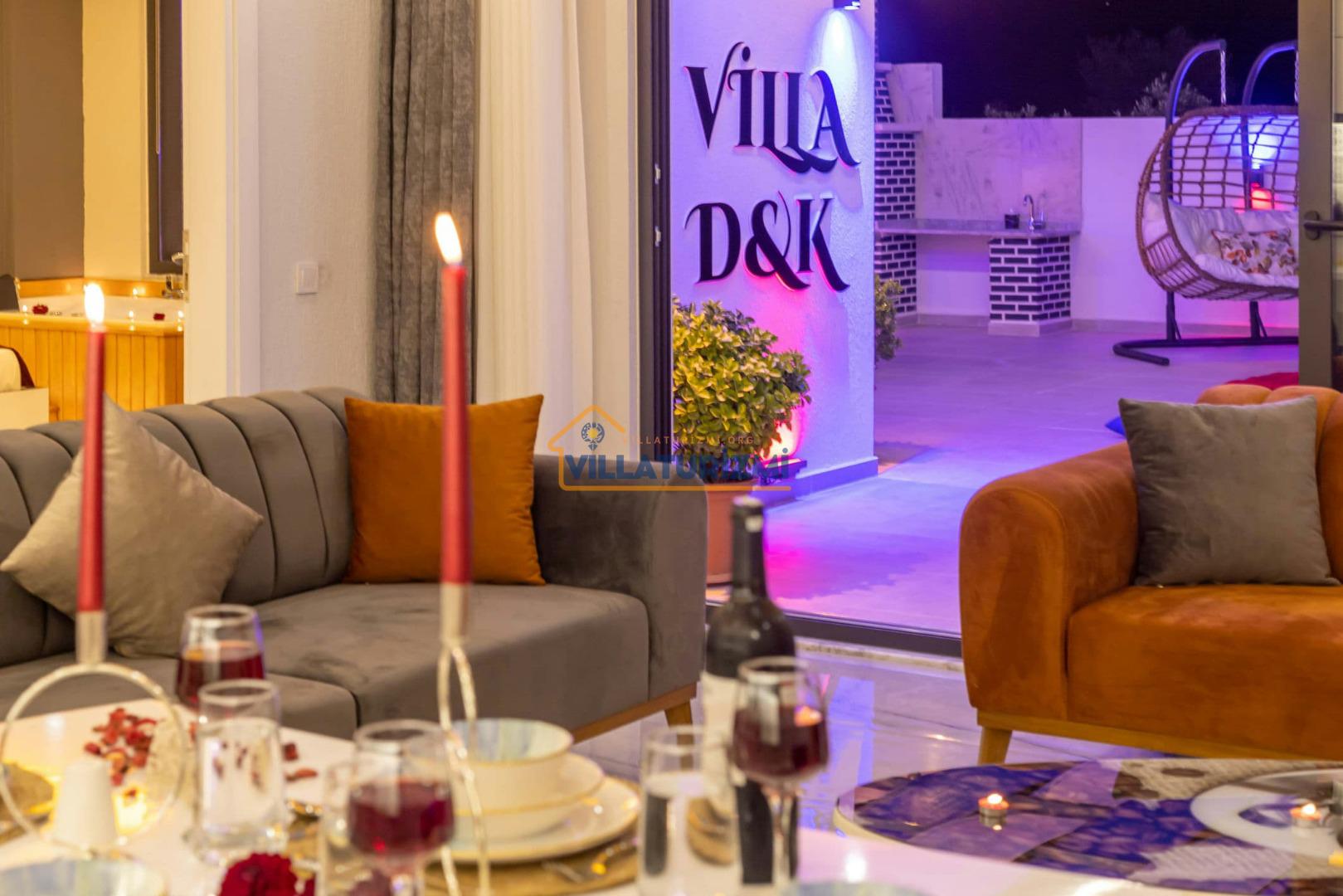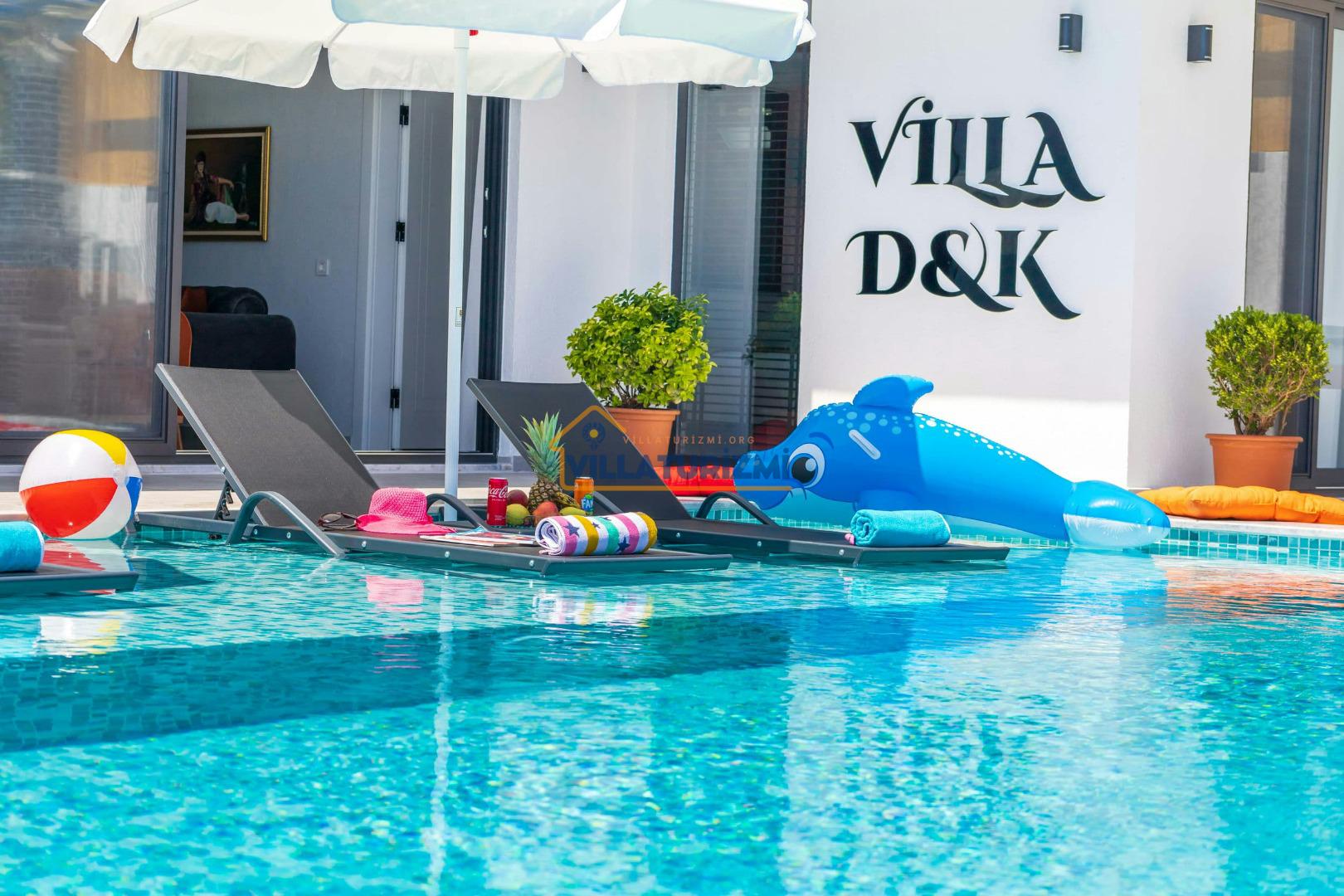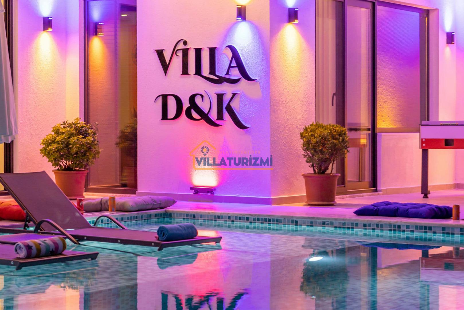 Villa DK, 2 yatak odasıyla konuklarını ağırlayabilen, maksimum 4 kişi kapasiteli, jakuzili ve özel havuzlu bir tatil villası olarak tanımlanmaktadır. Modern mimarisi ve konforlu iç mekan düzenlemeleri ile dikkat çeken Villa DK, her detayında tatilinizi daha da özel kılmak için özenle tasarlanmıştır. Renkli ve keyifli iç tasarımı, misafirlerine sıcak bir atmosfer sunmakta olup, aileler ve balayı çiftleri için mükemmel bir konaklama alanı oluşturmaktadır.