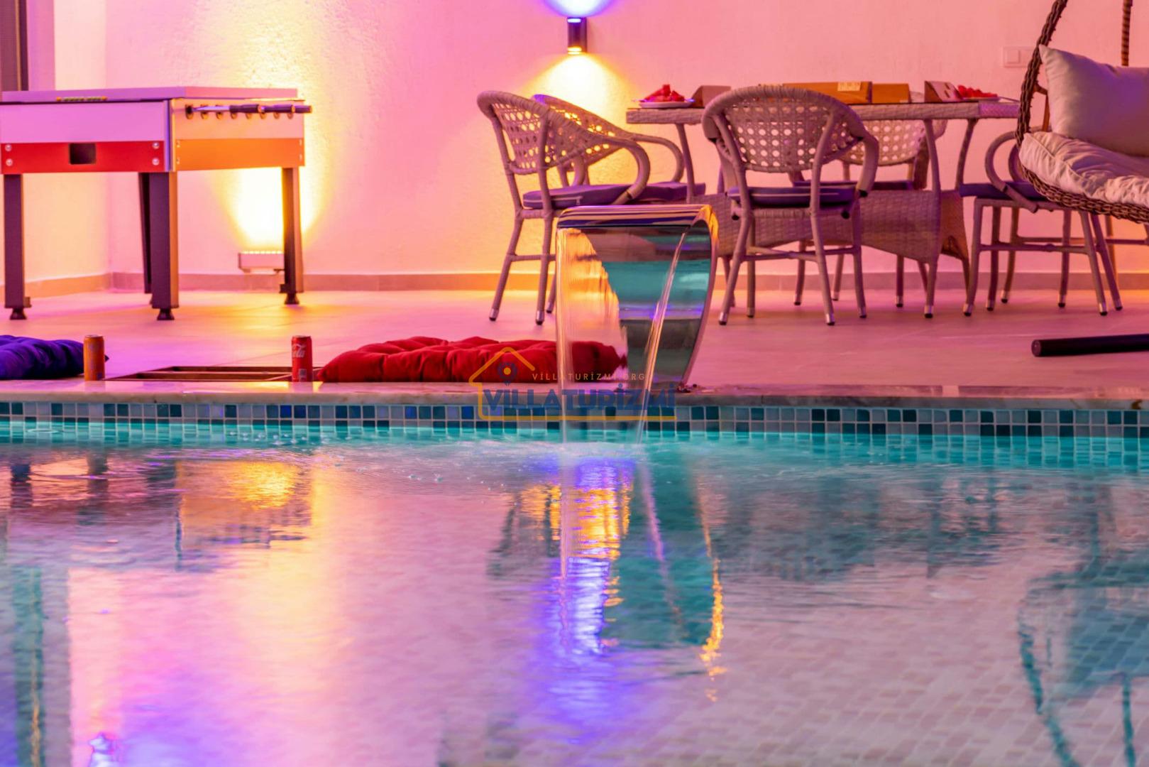 Villa DK’nın diğer bir özelliği ise çocuklar için tasarlanmış sığ havuz alanıdır. Ailelerin çocuklarıyla birlikte güvenle tatil yapabilmelerine olanak tanıyan bu detay, Villa DK’yı aile dostu bir seçenek haline getirmektedir. Ailece geçirilen zamanın ve çocukların güvenli bir şekilde oyun oynayabileceği alanların önemi göz önünde bulundurulduğunda, bu özellik, özellikle aile tatillerinde büyük bir avantaj sağlamaktadır.