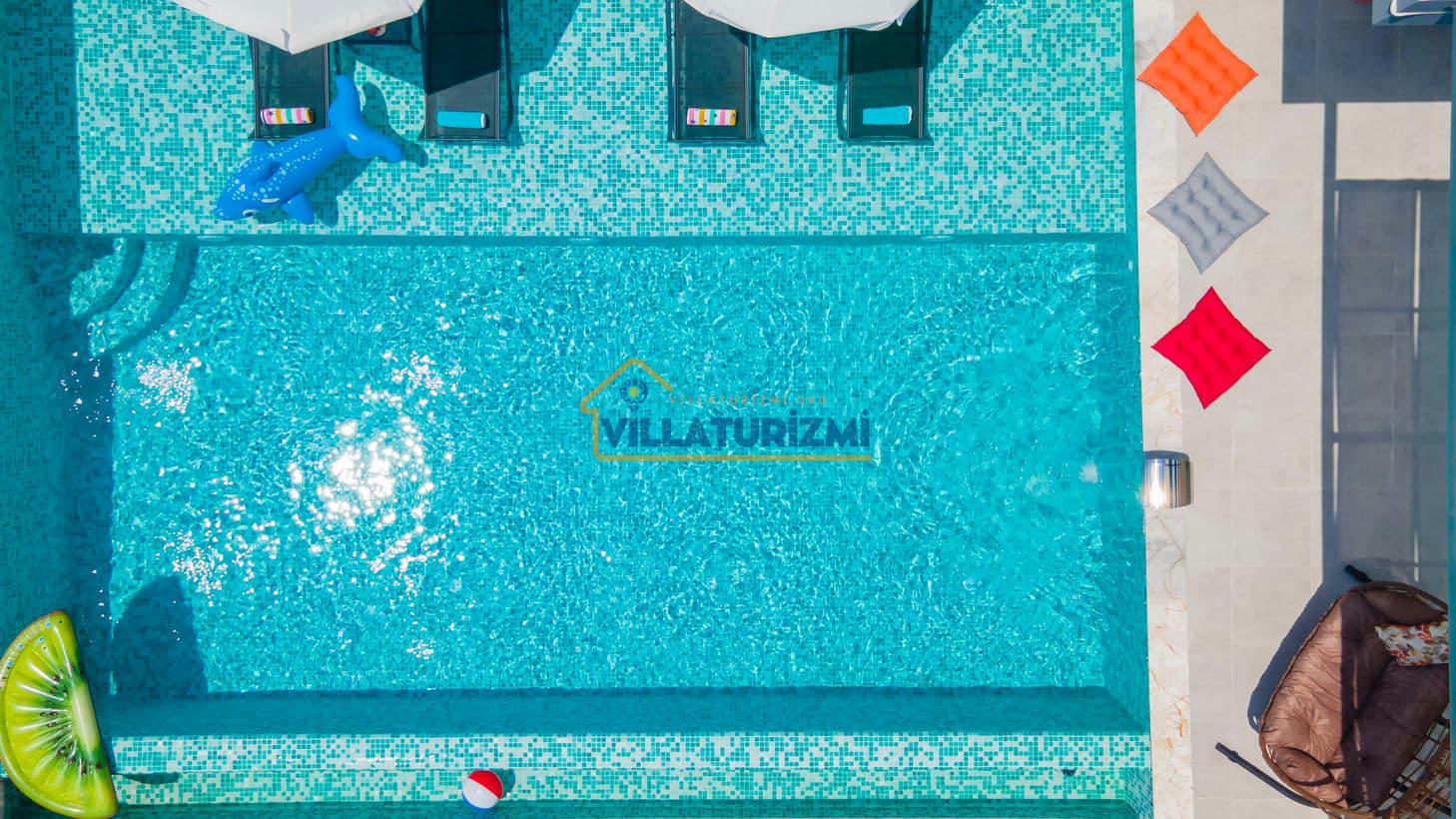 Açık Havuz: Villamızın özel yüzme havuzu boyutları 9 m x 4 m , Derinlik: 1.50 m'dir. Sığ havuz uzunluk 9mt en 2,5mt derinlik 0,40cm