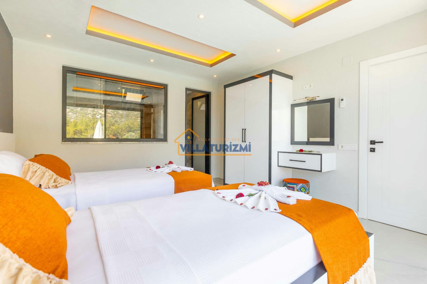 2.Yatak Odası: 2 tane 100cmx200cm boyutlarında birleştirilebilir tek kişilik yatak bulunur. Oda büyüklüğü 10m2’dir.