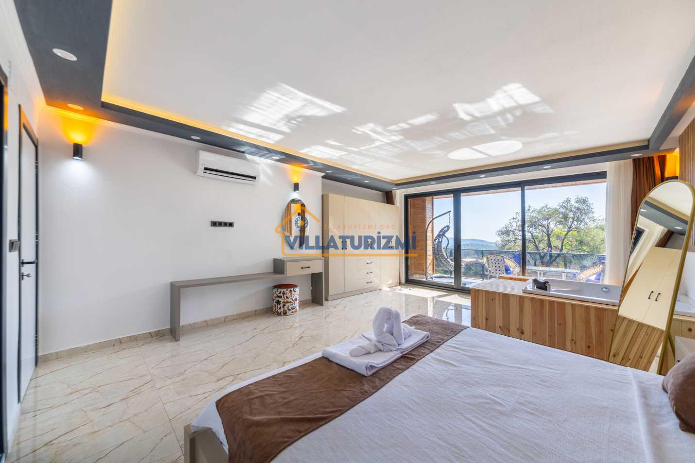 2. Yatak Odası : Çift kişilik suit yatak odası, klima, jakuzi, komodin, elbise dolabı, banyo ve lavabo olup yatak odasında salıncak ve teras bulunmaktadır.