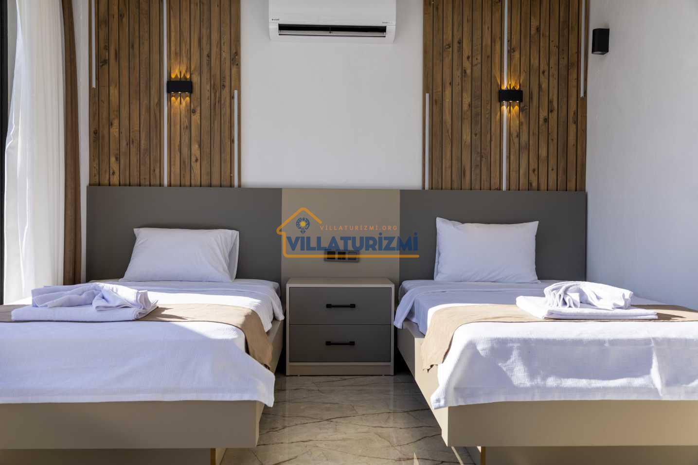 3. Yatak Odası : 2 tek kişilik yatak, klima, komodin, elbise dolabı, banyo ve lavabo bulunmaktadır.