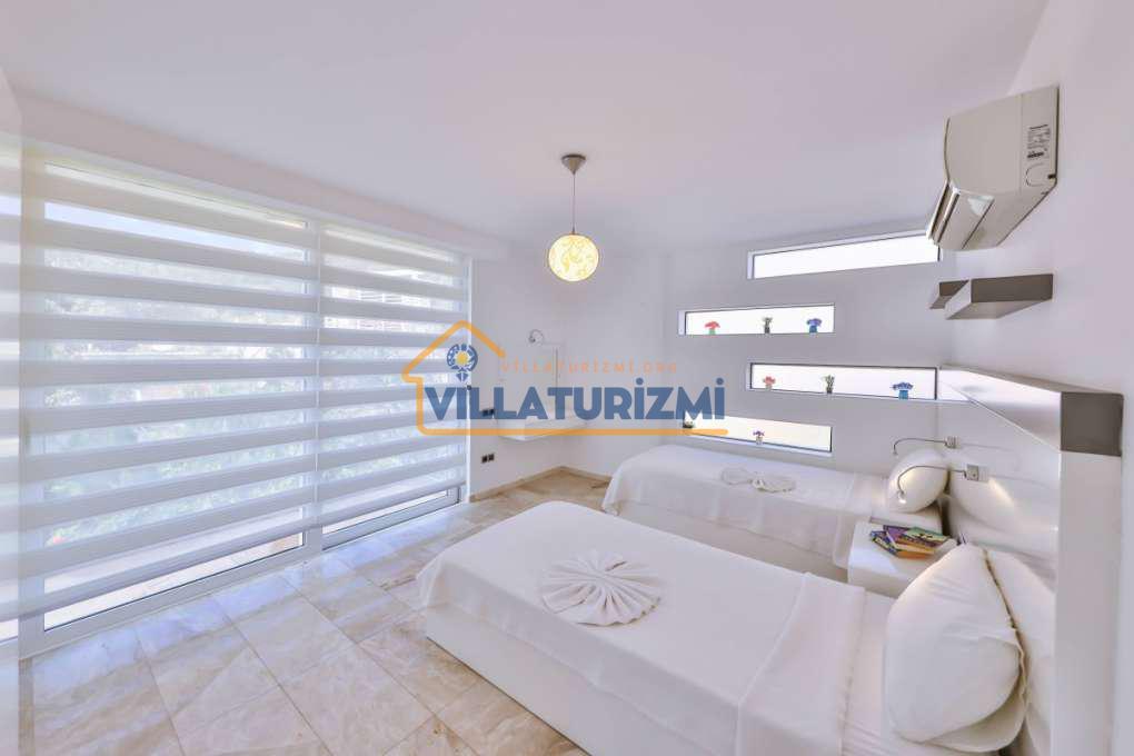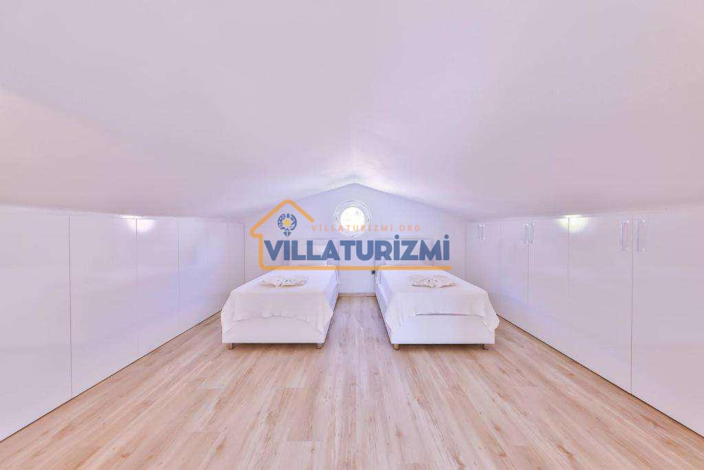 Bu kiralık tatil villamız, 5 yatak odası 4 banyosu ve 10 kişi kapasitesi ile geniş bir konaklama imkanı sunmaktadır. Her odası özenle tasarlanmış ve konforlu bir şekilde döşenmiştir. Misafirlerin ihtiyaçları düşünülerek her detayın titizlikle planlandığı bu villamız, konuklarına konforu ve lüksü hissettirmek için rüya gibi bir tatil deneyimi sunmaktadır.