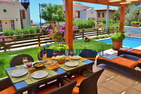 Kalkan’ın yüksek kesimlerinde yer alan Villa Kalu isimli Yazlık Tatil Villamız, Kalkan’ın nefes kesen deniz manzarasına sahiptir.