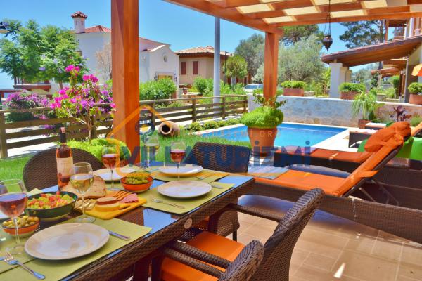 Villa Planı: villamız, 3 yatak odasına 2 banyoya sahip olup 6 kişi konaklama kapasitesine sahiptir. Kullanışlı havuz terası ile çekirdek ailelerin konforu düşünülerek özenle tasarlanmıştır.