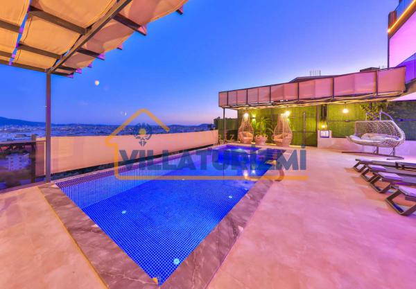 Villamızın en üst katında bulunan jakuzi ve sauna ile konforlu bir tatil deneyimi sunmaktadır. Ayrıca geniş teras alanında, muhteşem doğa manzarasının keyfini çıkarırken masa tenisi ve langırt gibi aktivitelerle stres atabilirsiniz. Havuz terasında yer alan bahçe salıncağı ise dinlenmek ve huzur bulmak isteyen misafirler için ideal bir seçenektir.