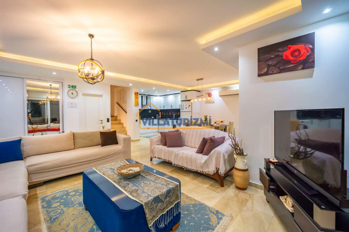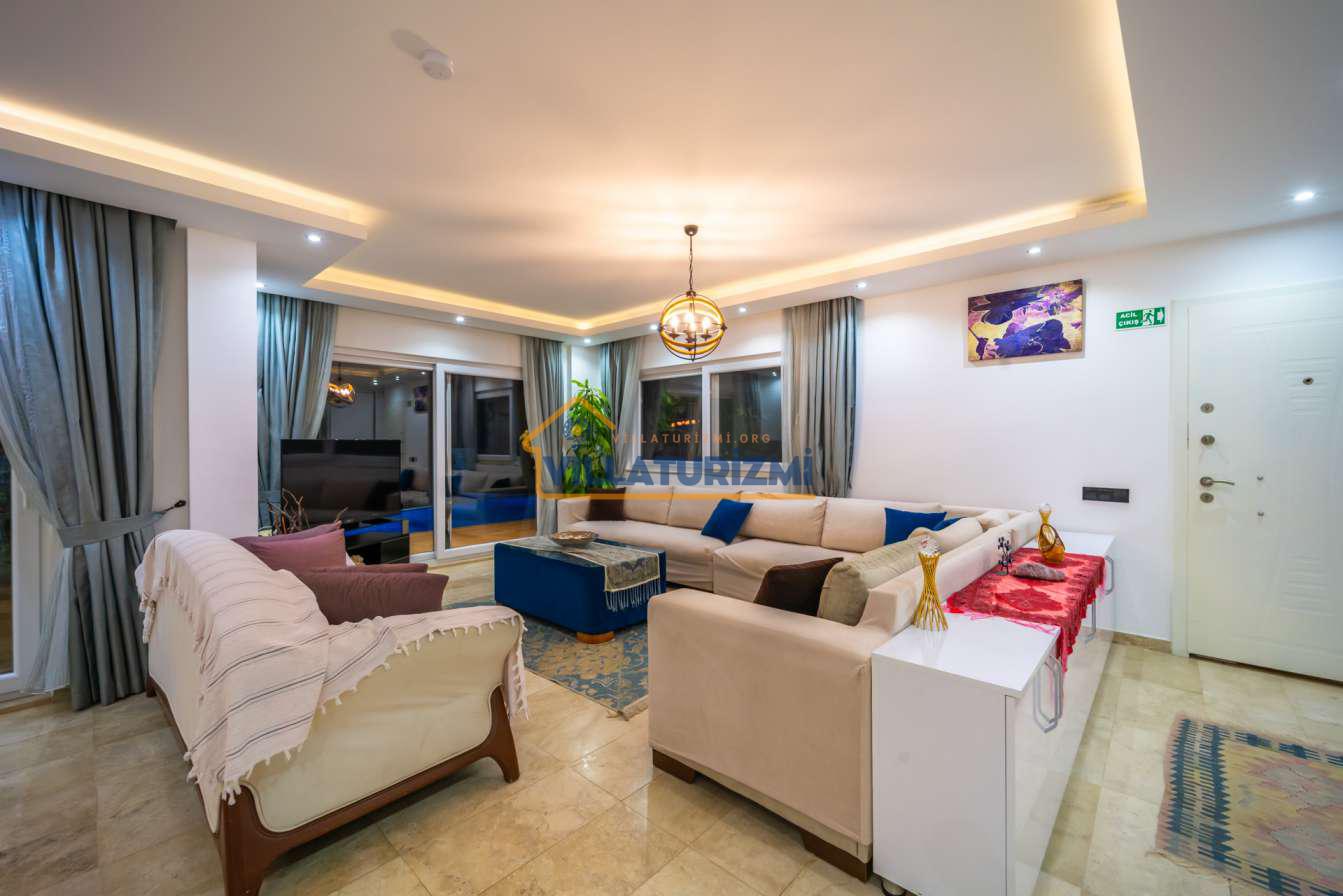 Oturma Odası : Zemin katta yer almaktadır. Deniz manzaralıdır. L tipi koltuk, TV , Klima , Lavabo