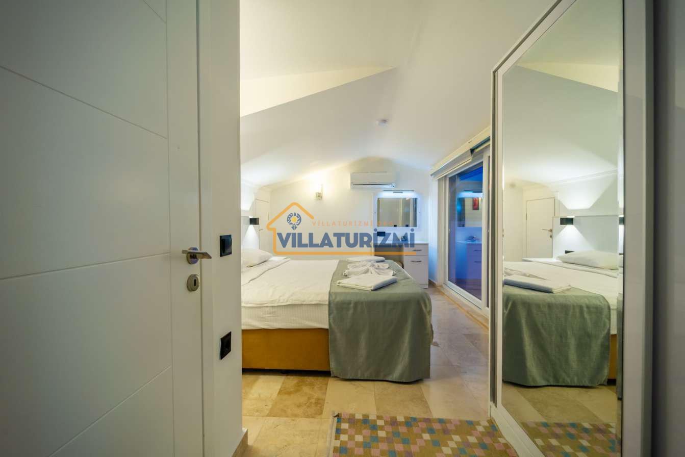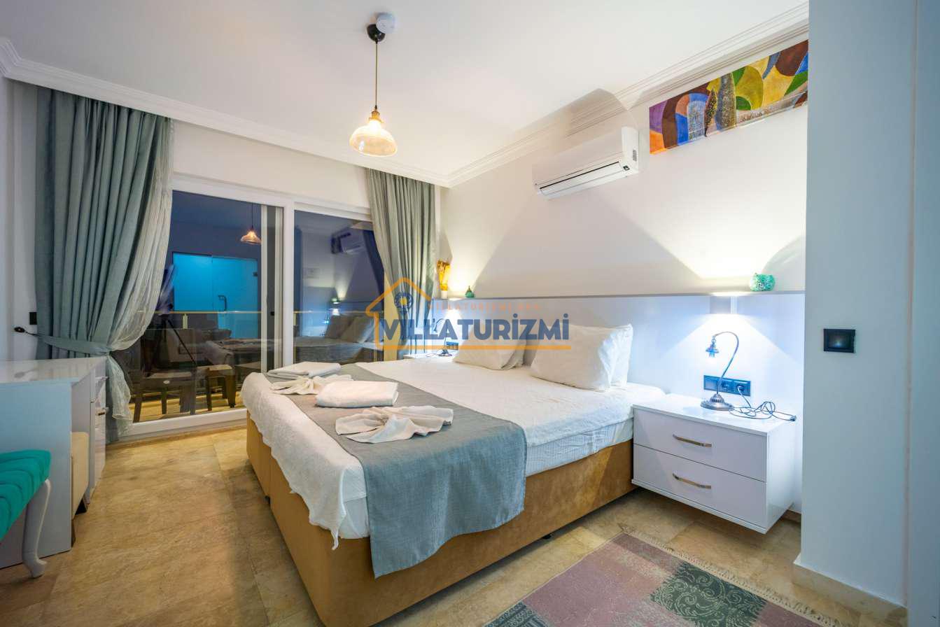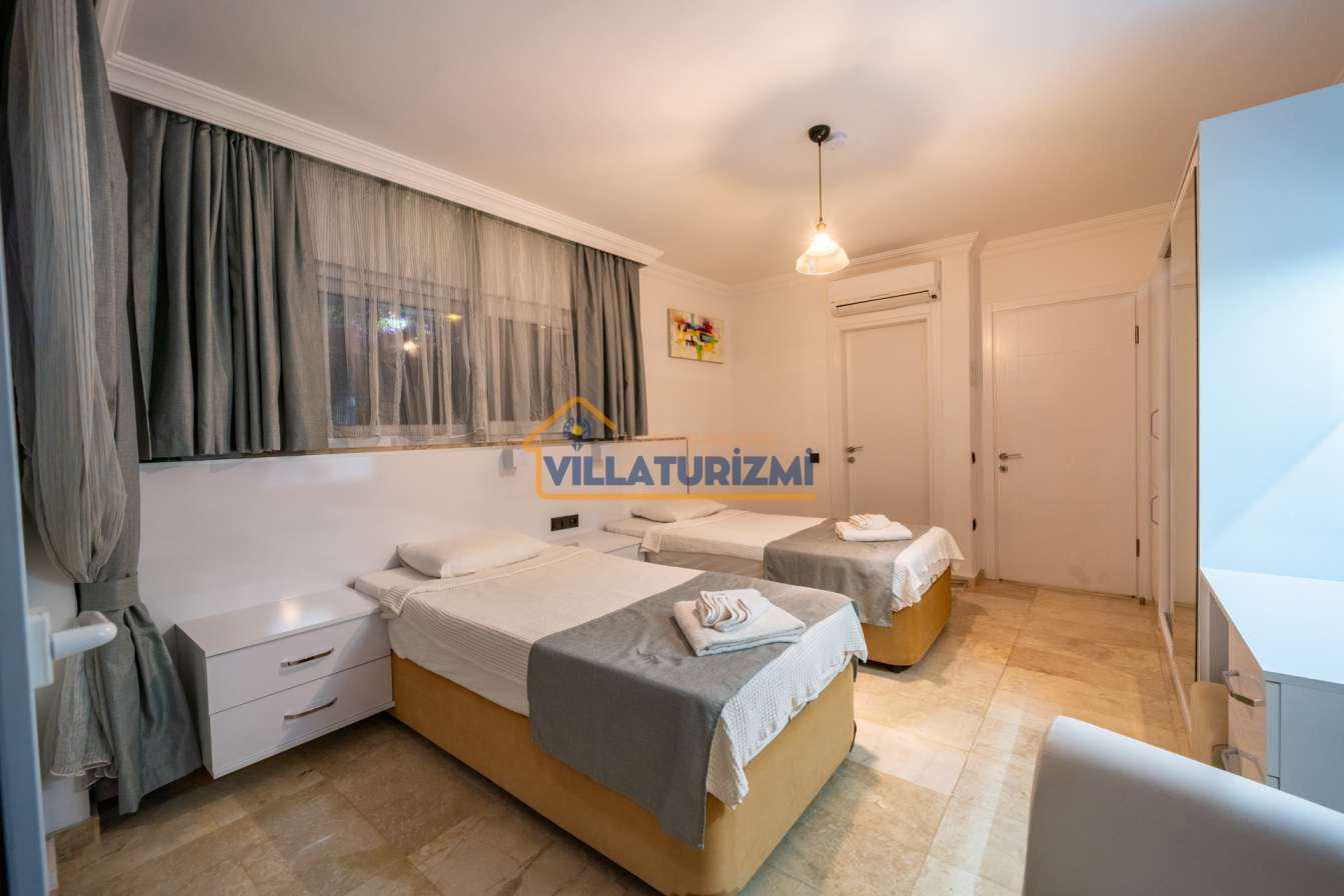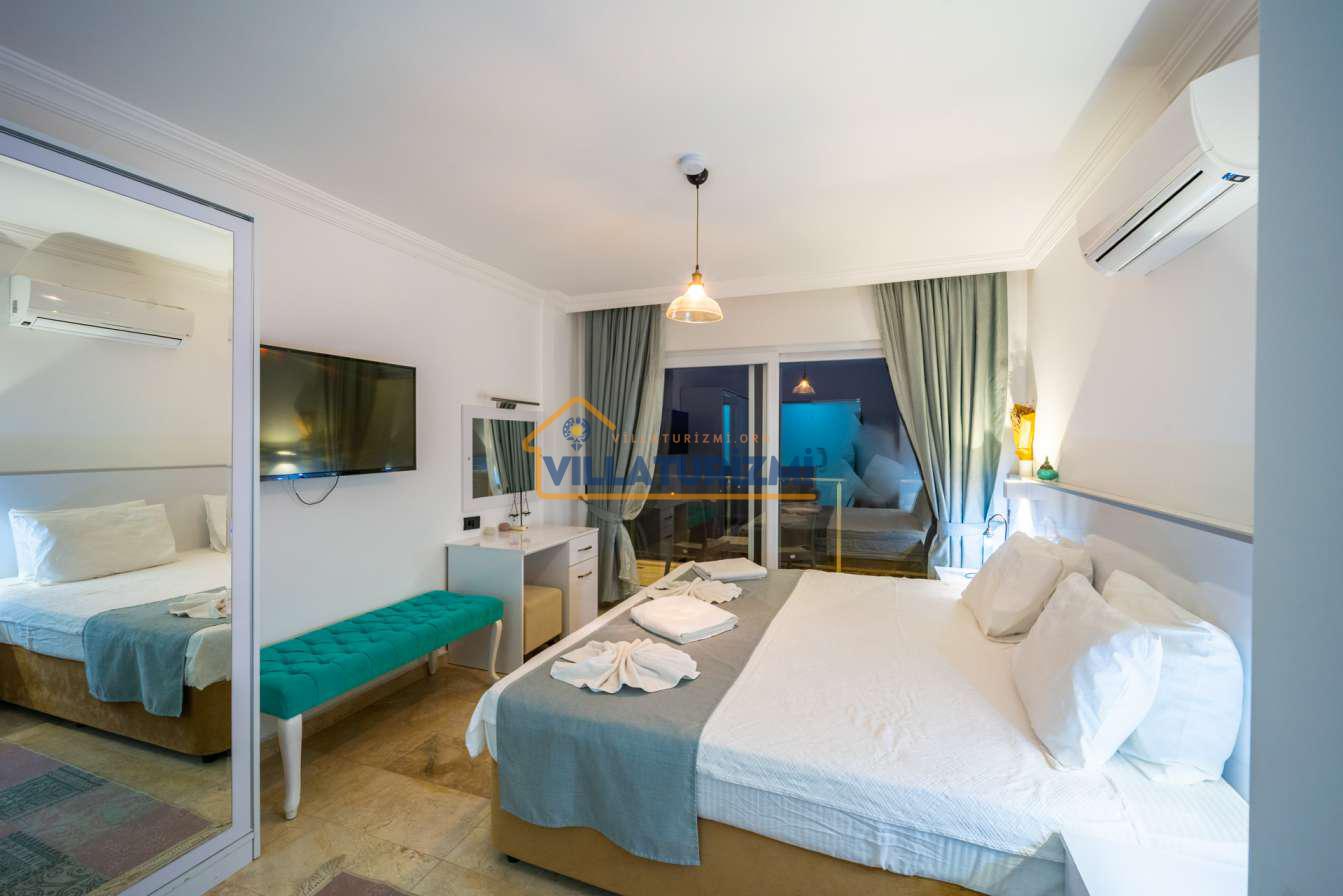 2. Yatak Odası: 1. katta yer almaktadır.2 adet tek kişilik yatak mevcuttur. 1 adet çift kişilik yatak, klima, komidin, elbise dolabı, makyaj masası, saç kurutma makinesi ve banyo bulunmaktadır. Deniz manzaralıdır.