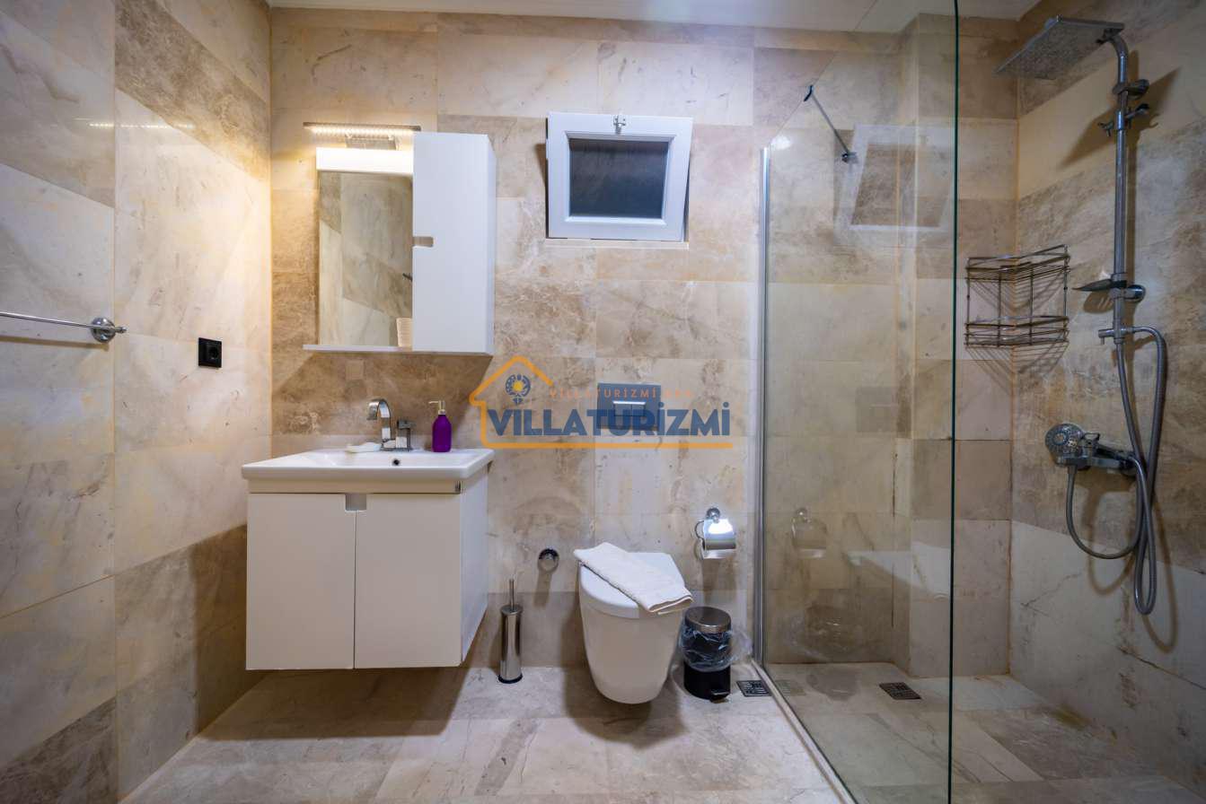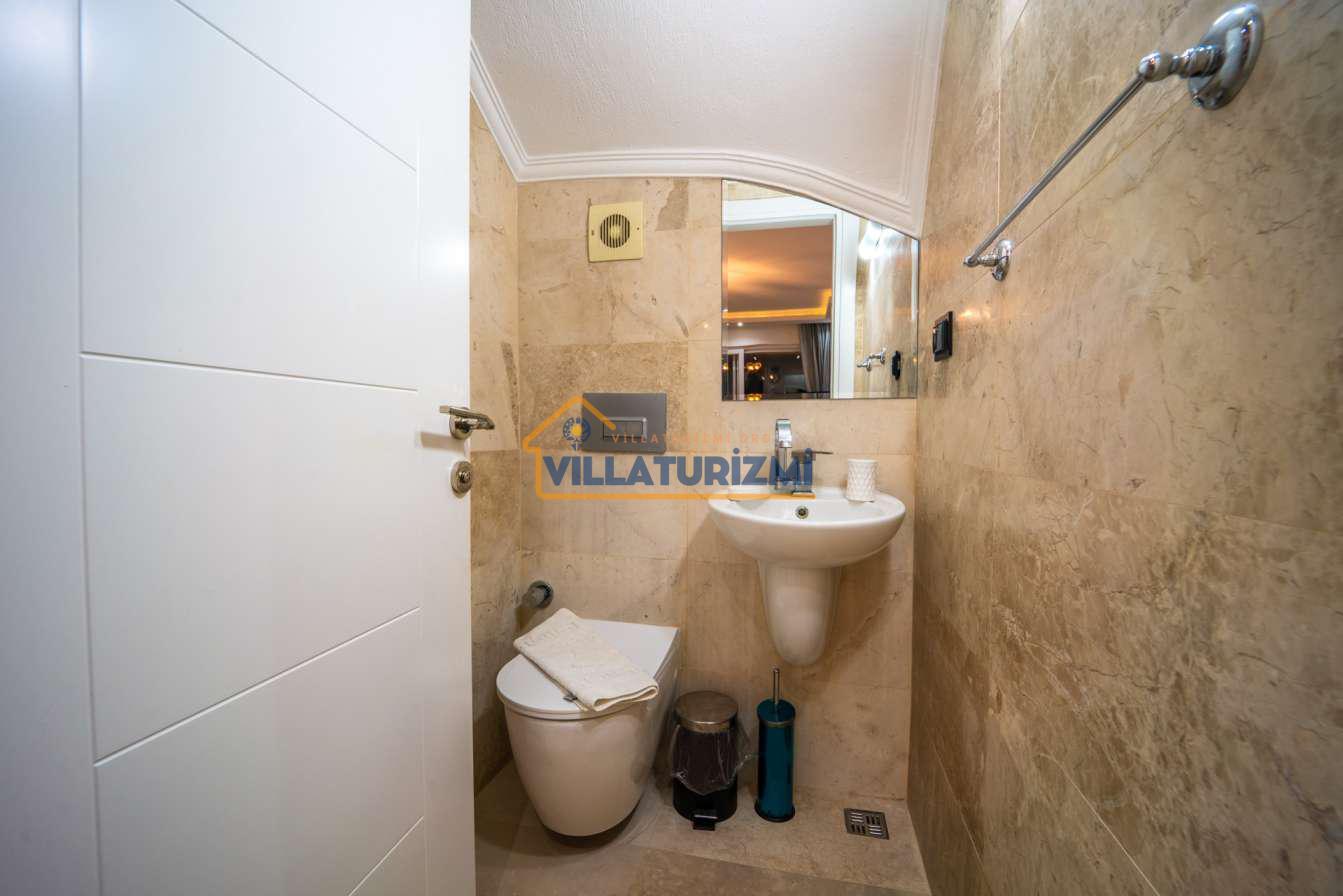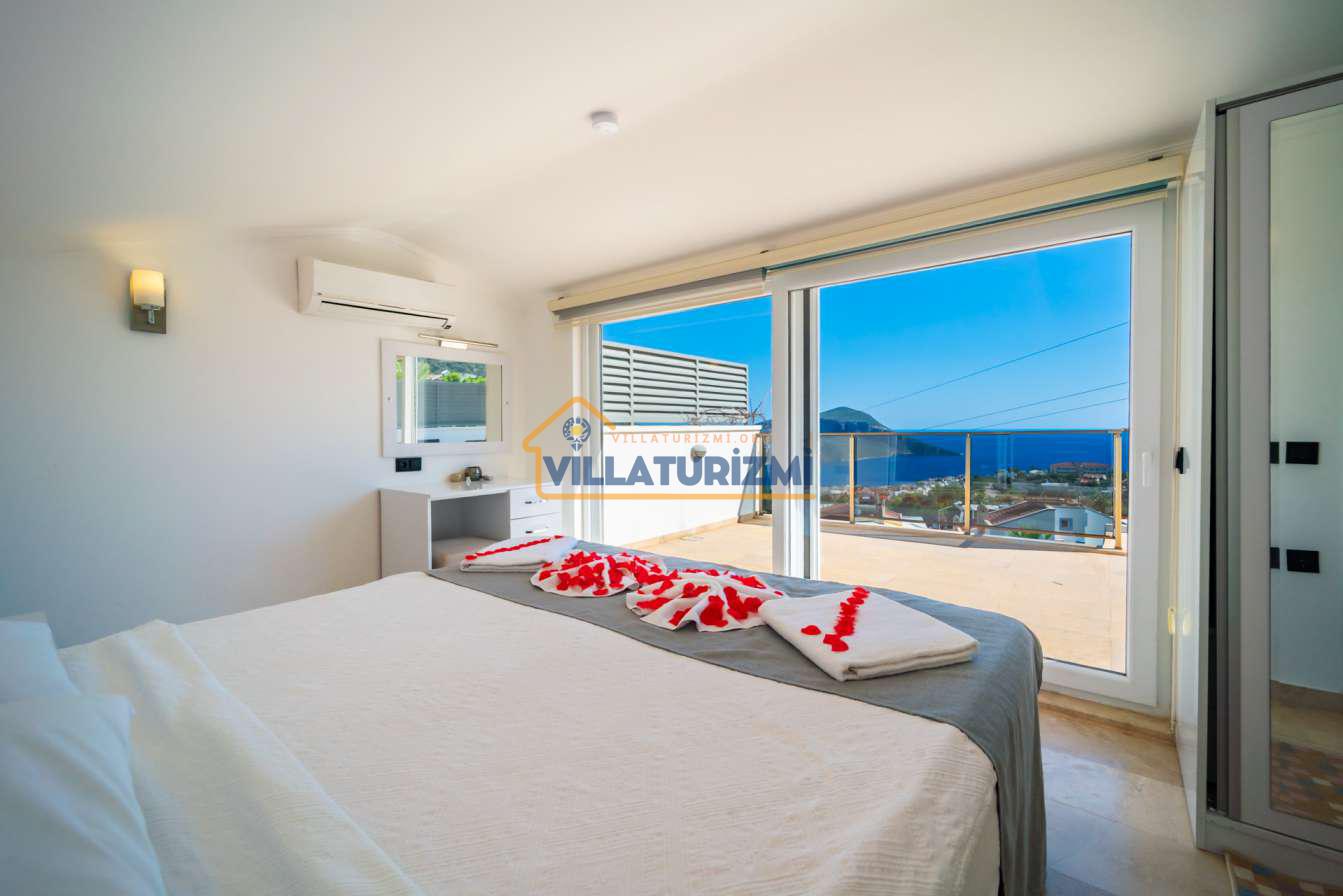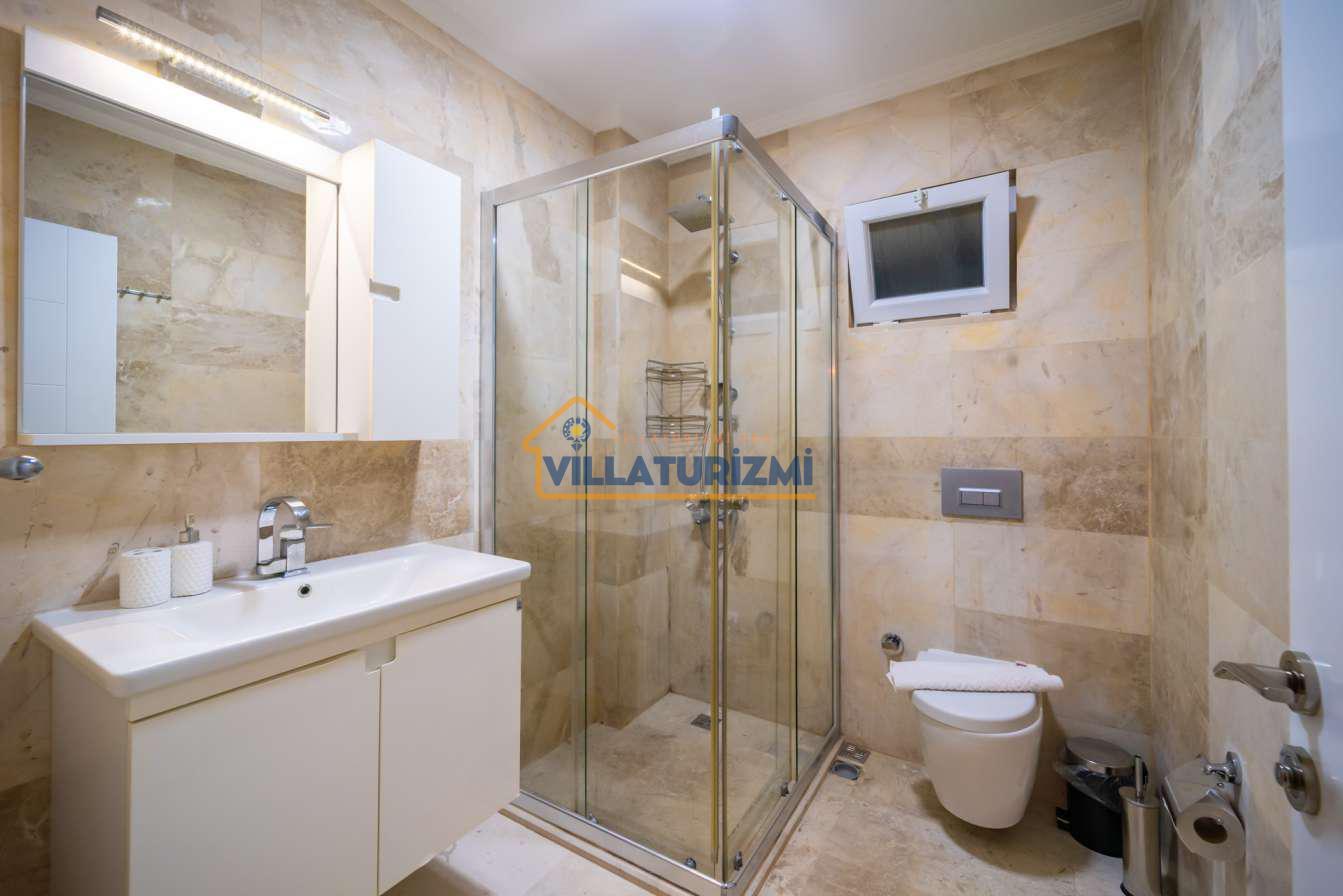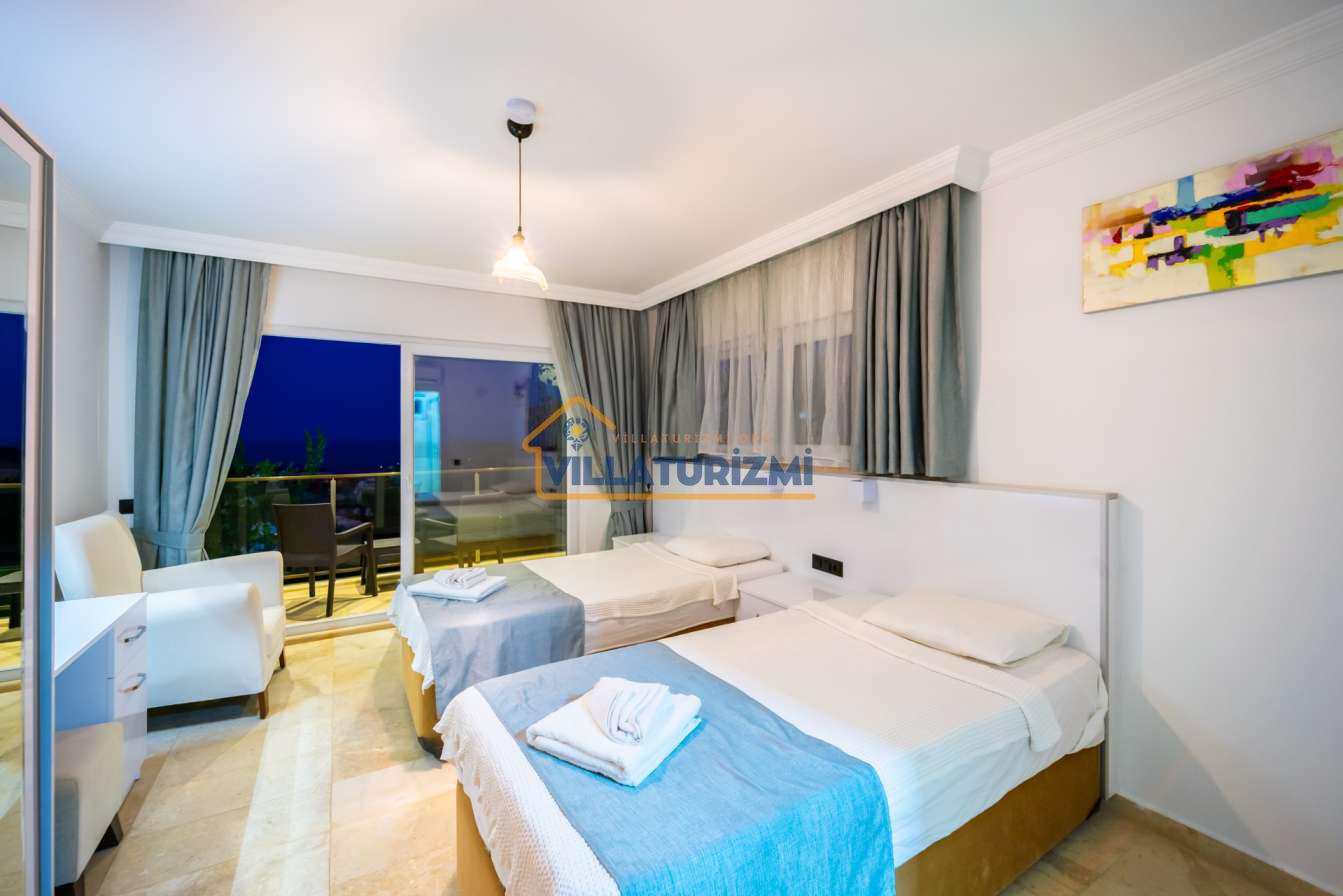 2. Yatak Odası: 1. katta yer almaktadır.2 adet tek kişilik yatak mevcuttur. 1 adet çift kişilik yatak, klima, komidin, elbise dolabı, makyaj masası, saç kurutma makinesi ve banyo bulunmaktadır. Deniz manzaralıdır.