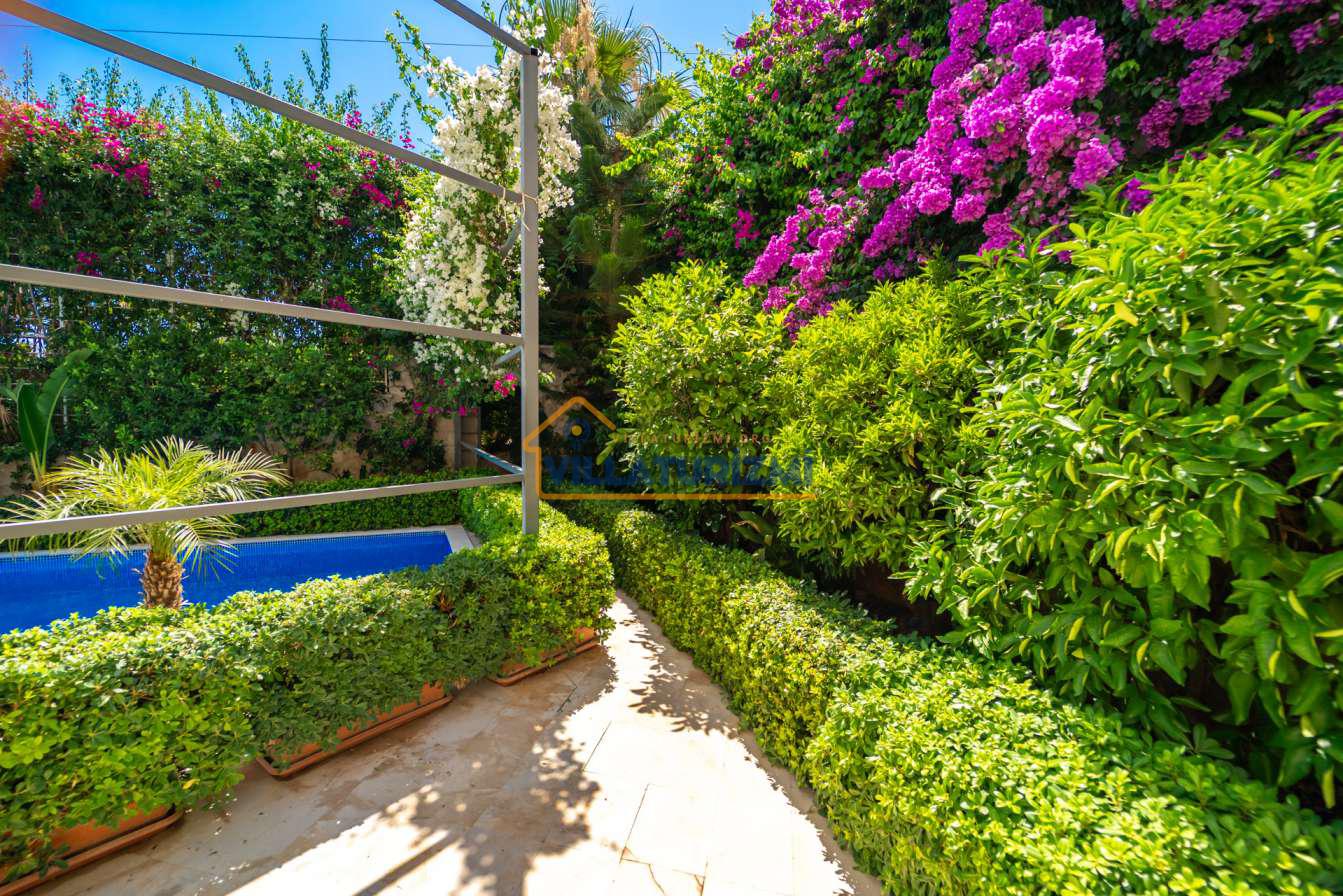 Havuz Katı Terası: Güneşlenme alanı, özel havuz ve bahçe. 6 adet şezlong, 3 adet şemsiye, deniz havlusu, 6 kişilik masa sandalye, çocuk havuzu, taş barbekü ve duş bölümü bulunmaktadır.