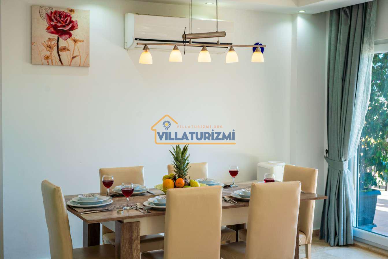 6 kişilik olan villamız 3 yatak odası Amerikan tipi, mutfağı ve mükemmel manzarası olan teras katı vardır.