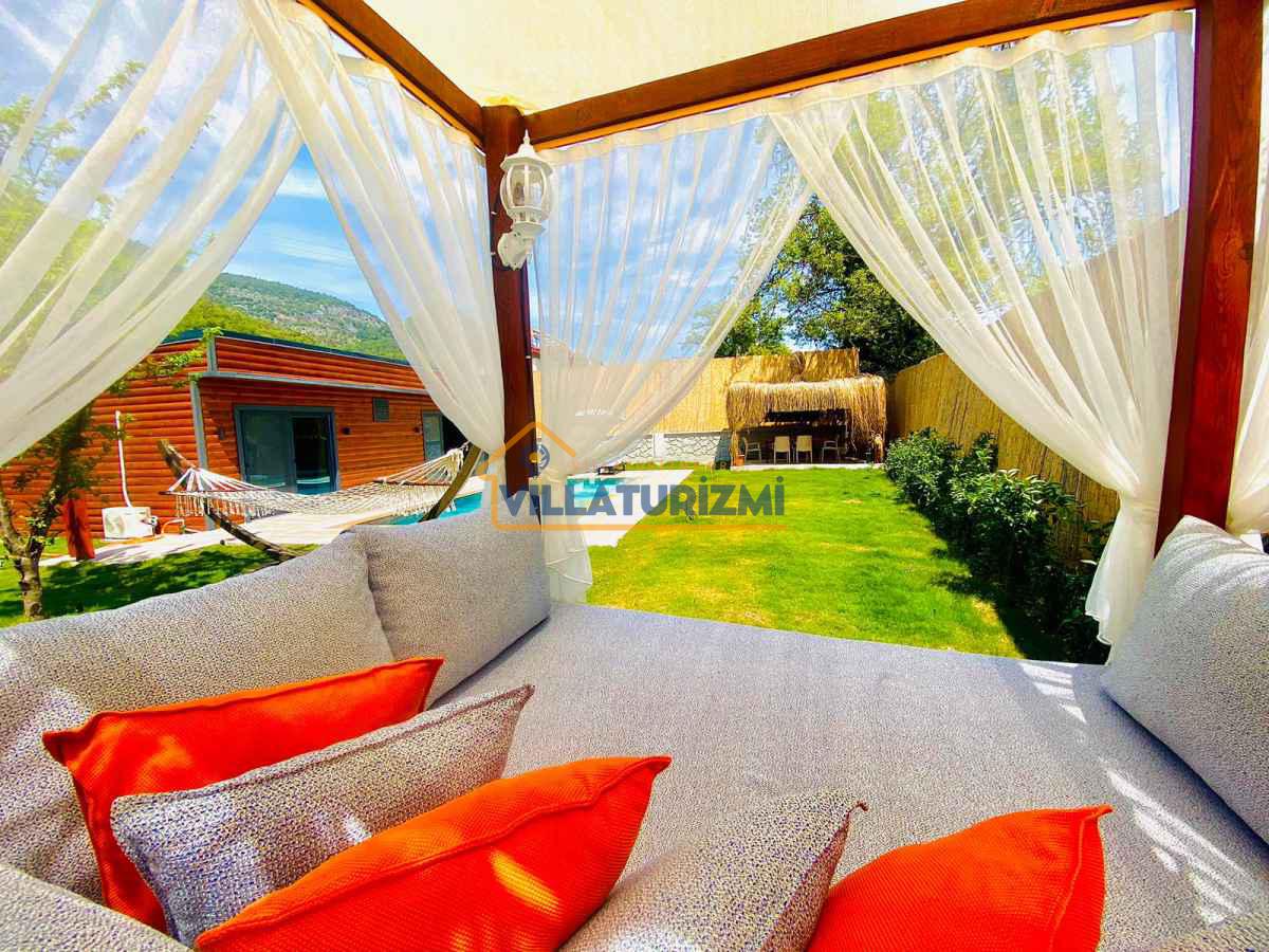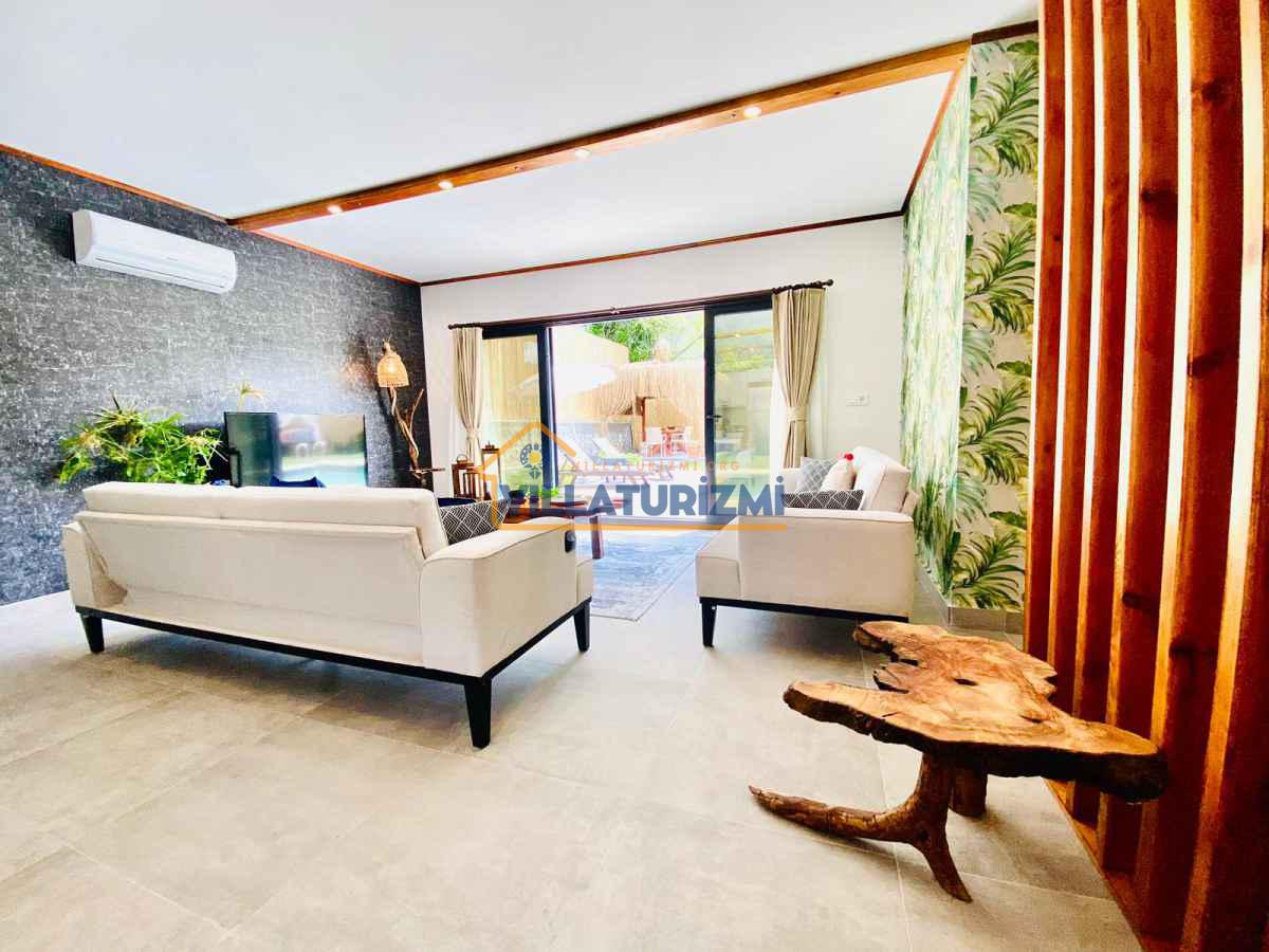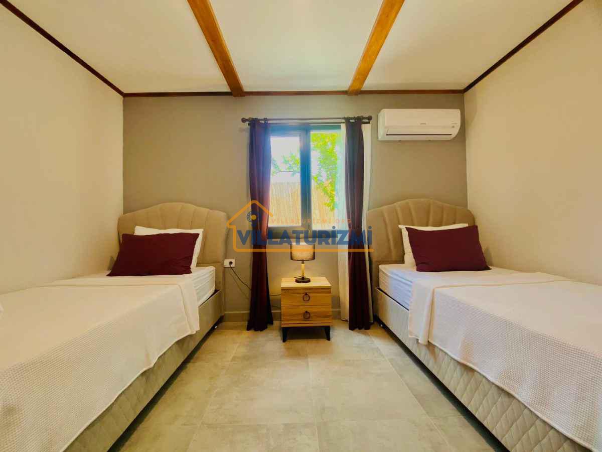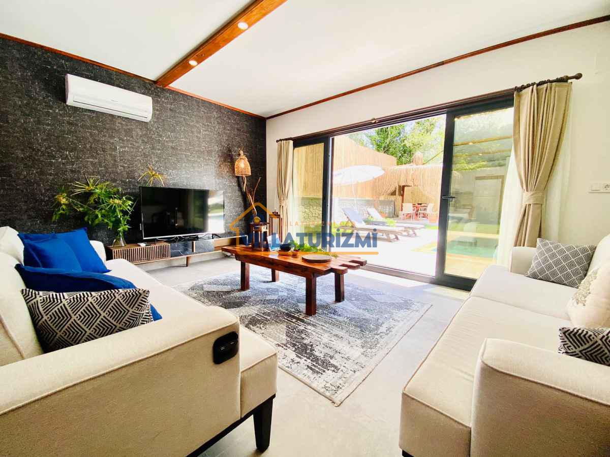Yemyeşil bahçe ve jakuzili havuz alanında yer alan konforlu oturma grupları, oldukça modern locası hamak ve salıncağı ile kapasiteye uygun şezlong takımları ve salıncağı konumlandırılan villamızın iç mekanı da dış mekanı kadar konforlu ve ferah bir yaşam alanı sunmaktadır. Villamız İnlice Plajı, Katrancı ve Günlüklü Koyuna oldukça yakın mesafededir yer almaktadır.