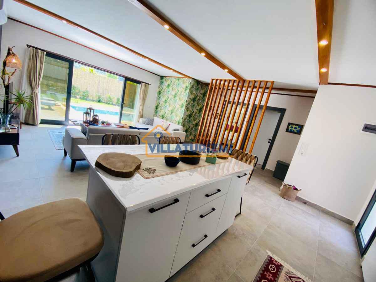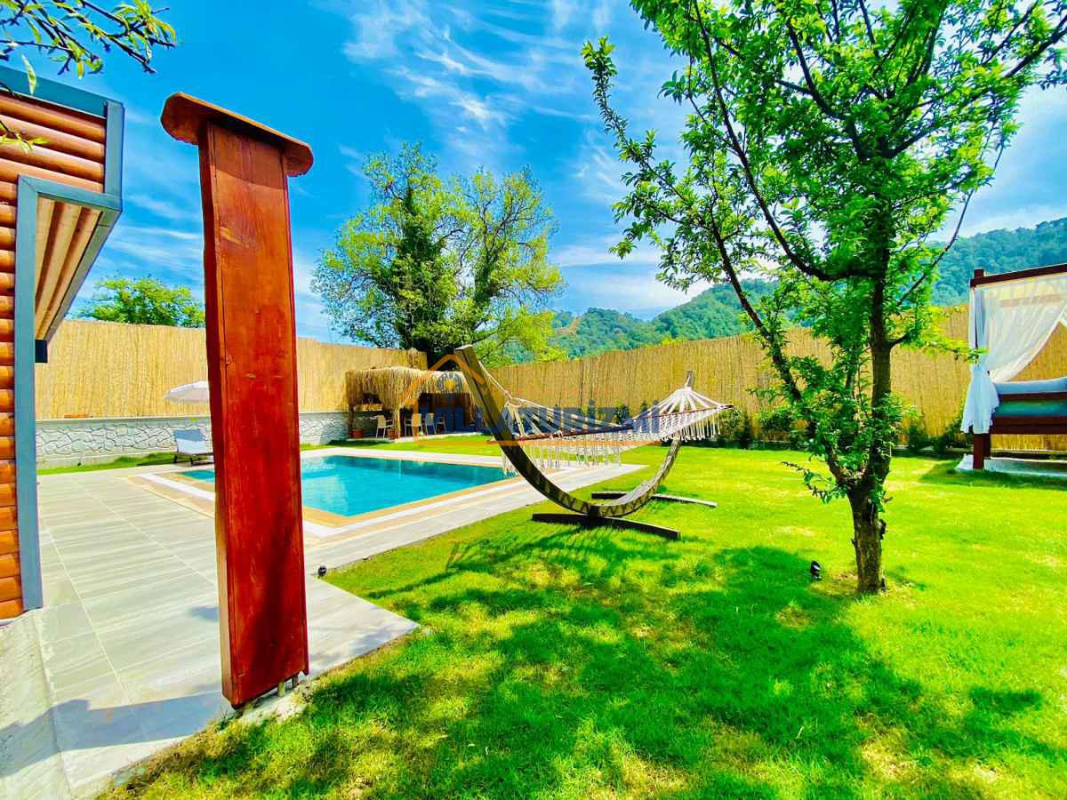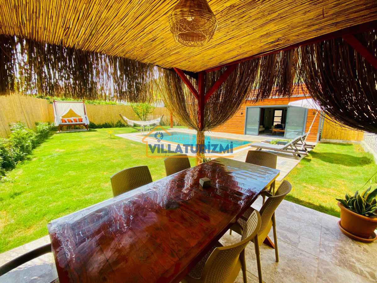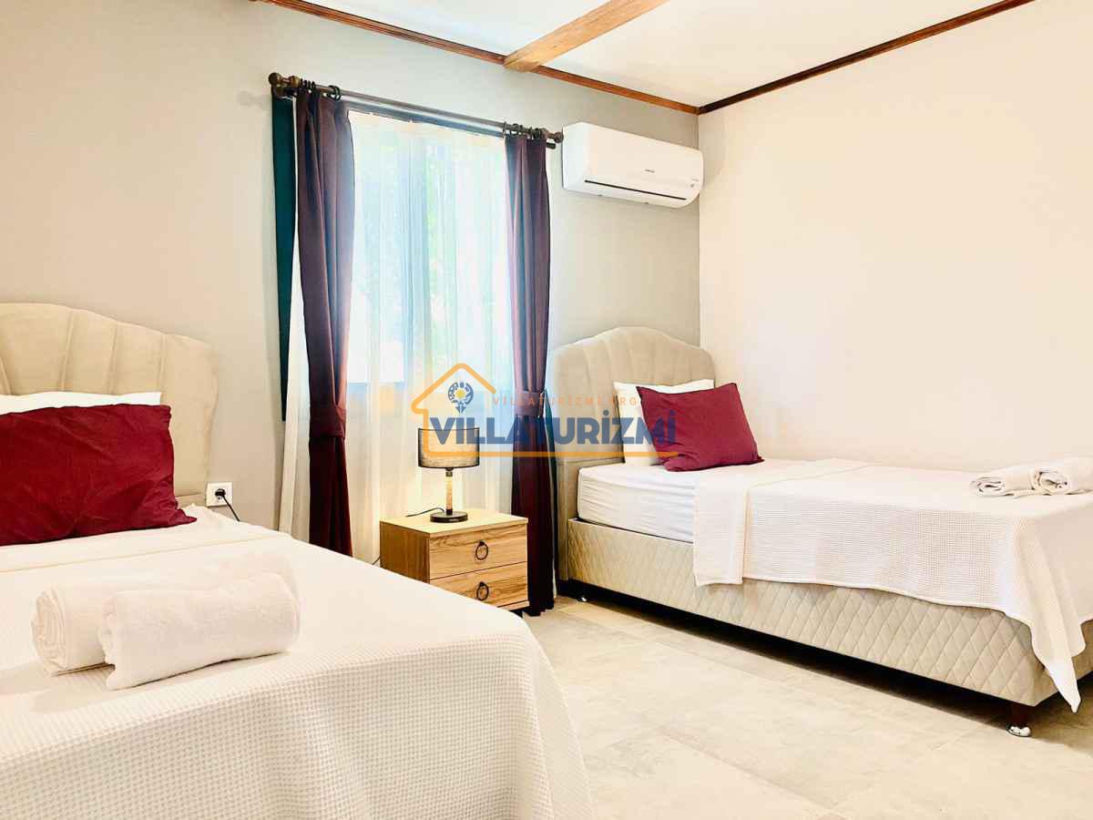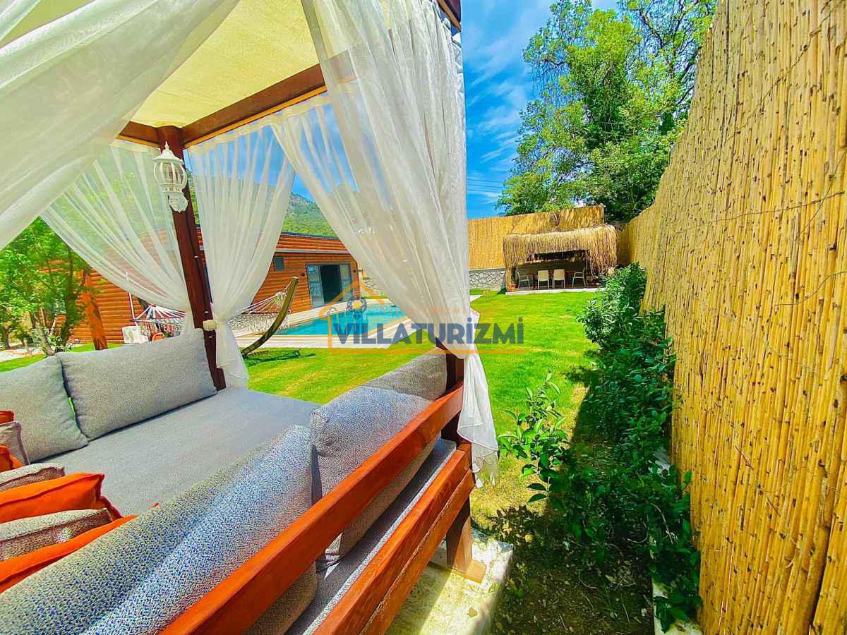 Yemyeşil bahçe ve jakuzili havuz alanında yer alan konforlu oturma grupları, oldukça modern locası hamak ve salıncağı ile kapasiteye uygun şezlong takımları ve salıncağı konumlandırılan villamızın iç mekanı da dış mekanı kadar konforlu ve ferah bir yaşam alanı sunmaktadır. Villamız İnlice Plajı, Katrancı ve Günlüklü Koyuna oldukça yakın mesafededir yer almaktadır.