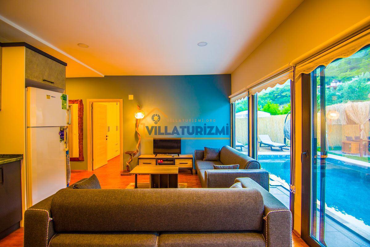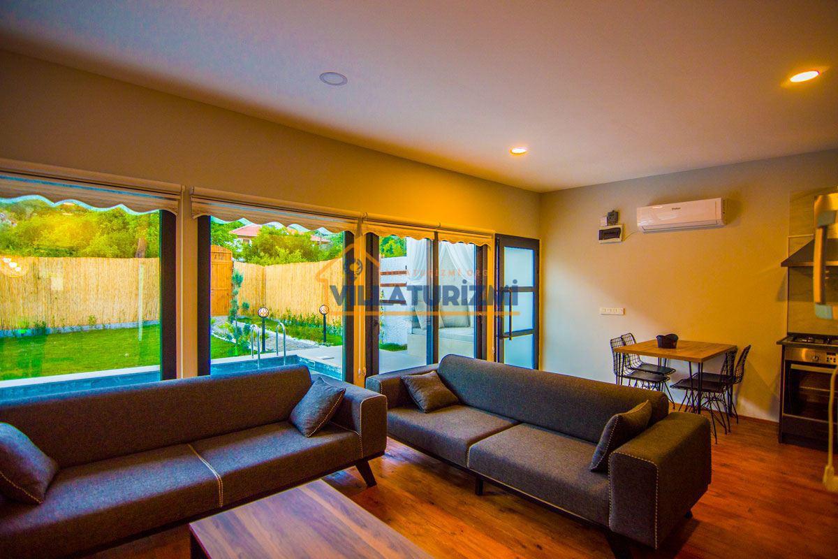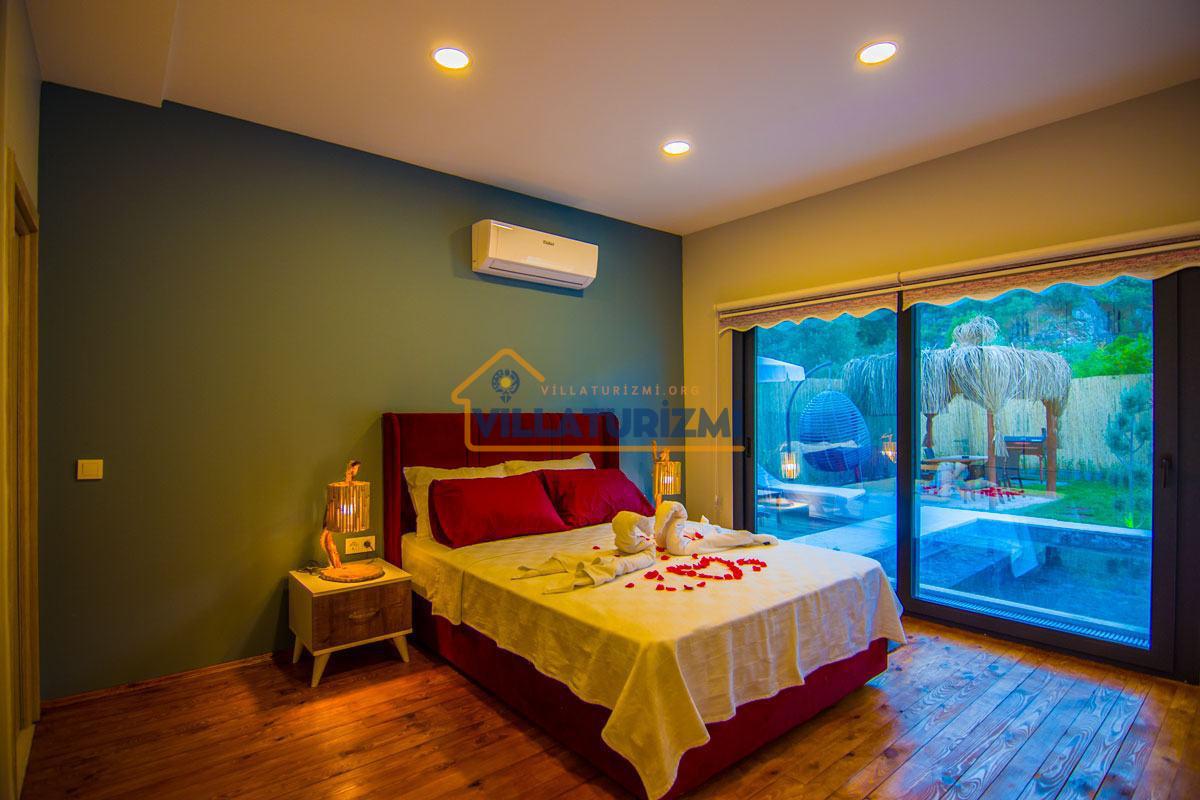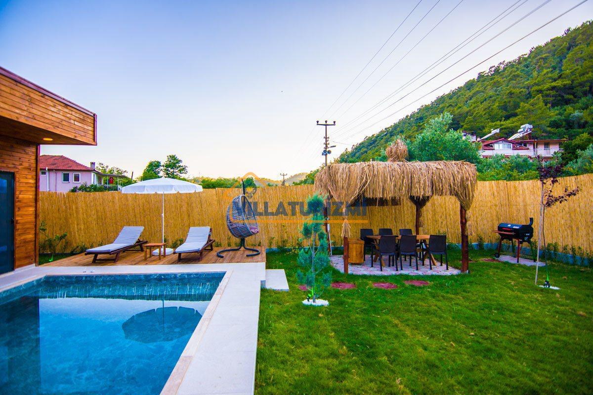 Yemyeşil bahçe ve jakuzili havuz alanında yer alan konforlu oturma grupları, oldukça modern locası hamak ve salıncağı ile kapasiteye uygun şezlong takımları ve salıncağı konumlandırılan villamızın iç mekanı da dış mekanı kadar konforlu ve ferah bir yaşam alanı sunmaktadır. Villamız İnlice Plajı, Katrancı ve Günlüklü Koyuna oldukça yakın mesafededir yer almaktadır.