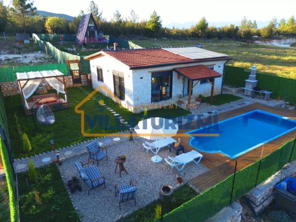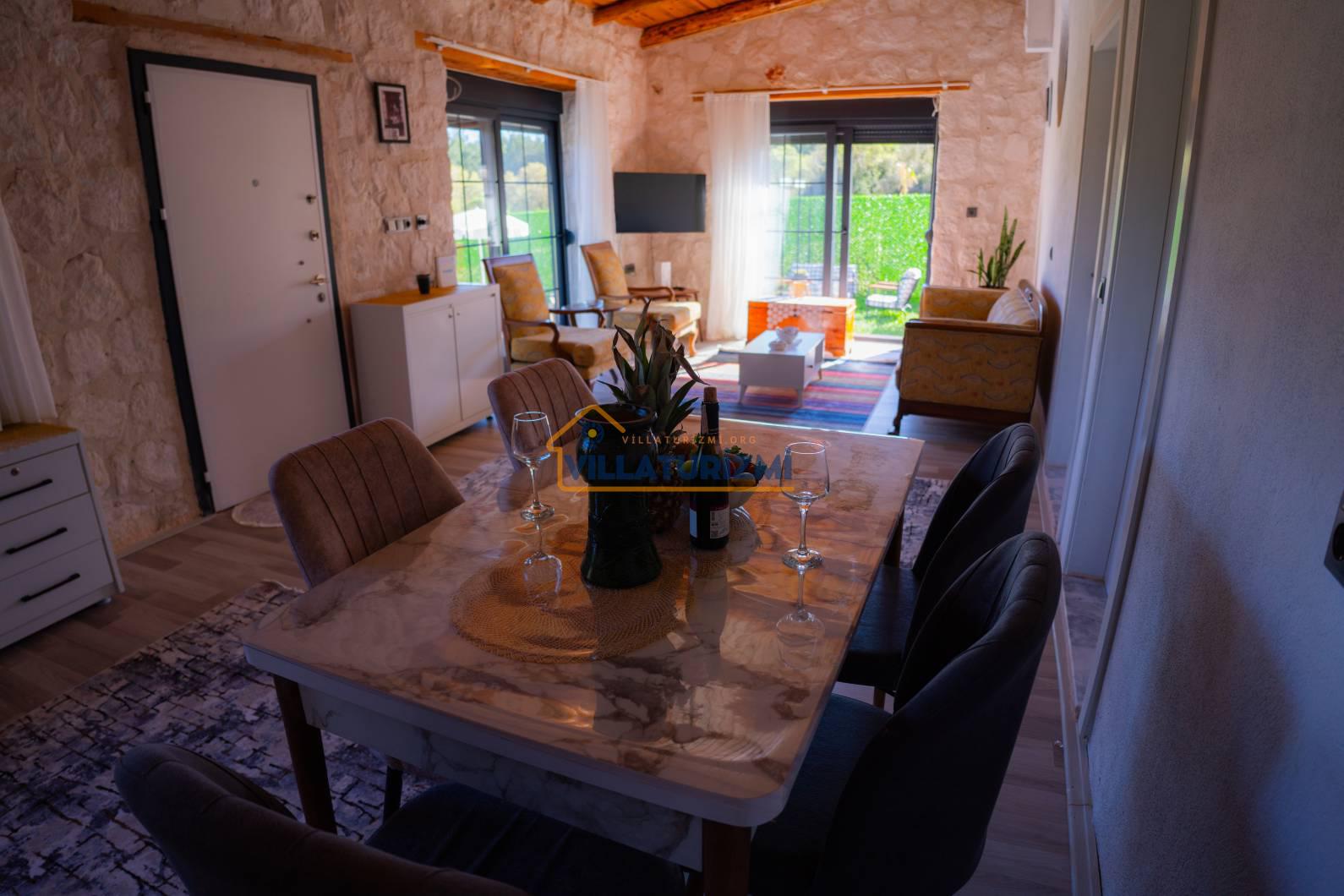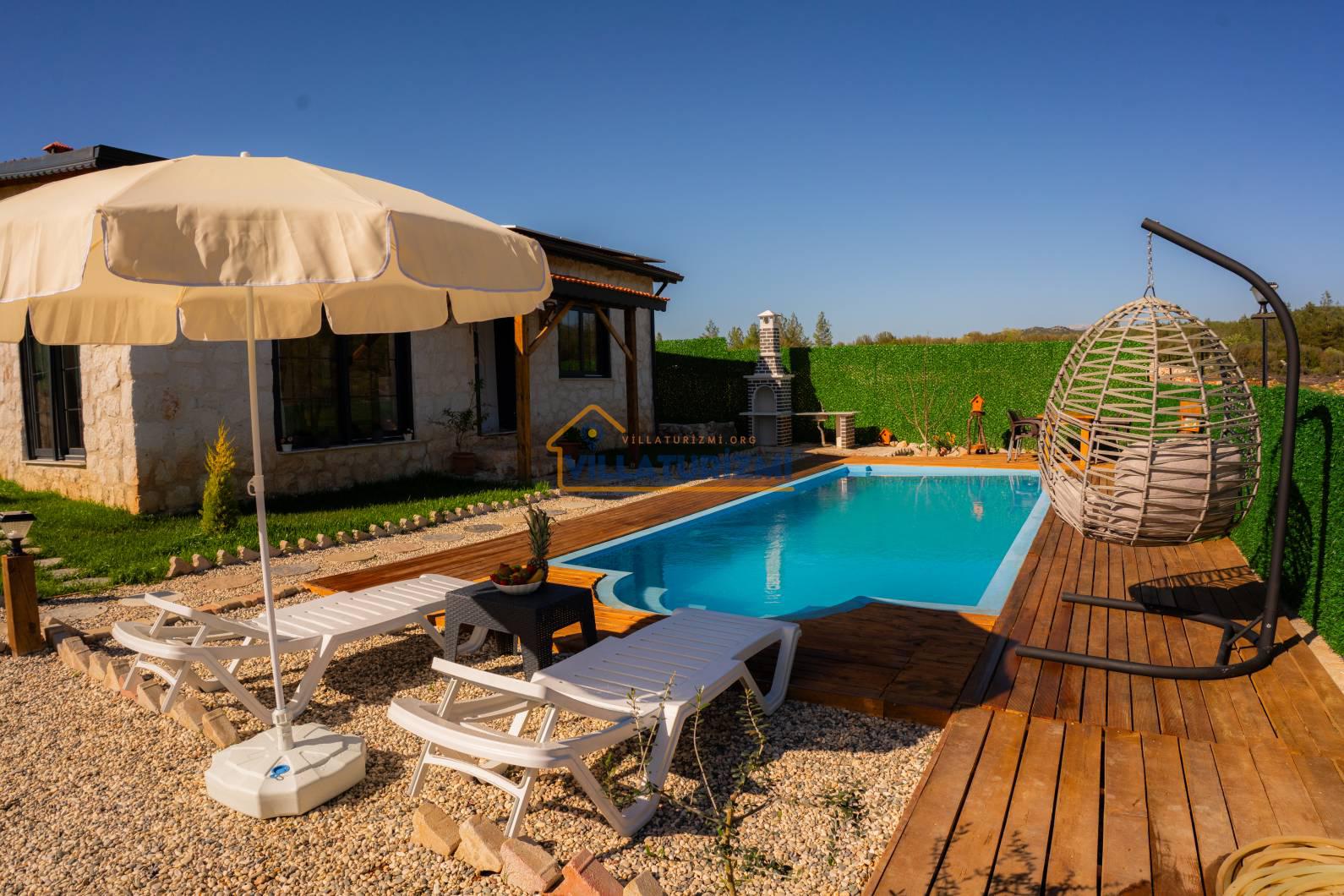 Villamız, geleneksel Türk mimarisinin sıcaklığını hissettirmektedir. İç mekânında konforlu yatak odaları, oturma odası, tam donanımlı mutfak ve banyo bulunmaktadır. Dış mekânda ise özel korunaklı havuz, güneşlenme terası, bahçe alanı ve barbekü imkanı gibi birçok olanak konuklarına keyifli bir tatil sunmaktadır.