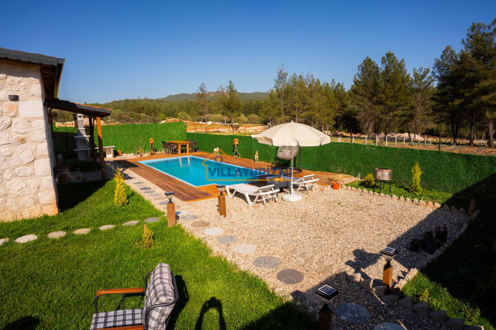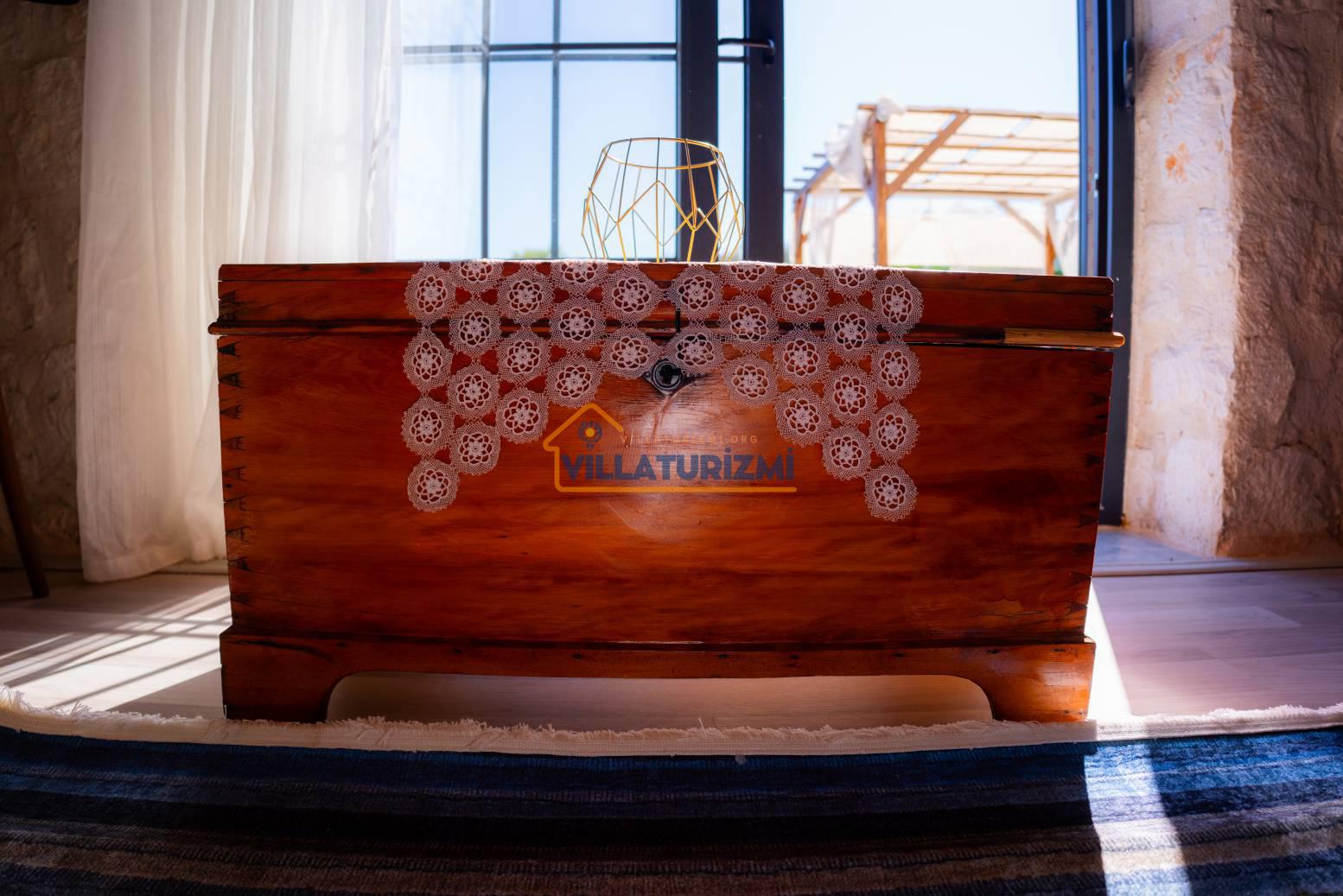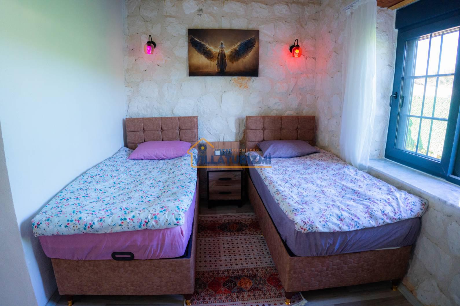 Villamız, geleneksel Türk mimarisinin sıcaklığını hissettirmektedir. İç mekânında konforlu yatak odaları, oturma odası, tam donanımlı mutfak ve banyo bulunmaktadır. Dış mekânda ise özel korunaklı havuz, güneşlenme terası, bahçe alanı ve barbekü imkanı gibi birçok olanak konuklarına keyifli bir tatil sunmaktadır.
