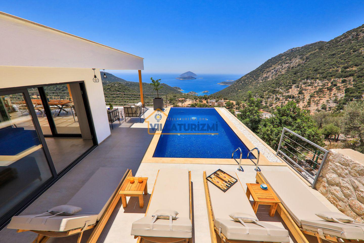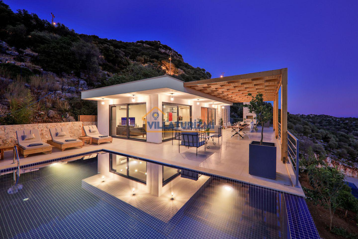 Kaş'ın, Bayındır köyünde bulunan inşaatı geçen yıl tamamlanan muhteşem doğa manzarasına ve muhteşem deniz manzarasına sahip konforlu süper lüks, çekirdek aileler ve balayı çiftleri için tasarlanmış çok özel villa seçeneklerimizdendir.