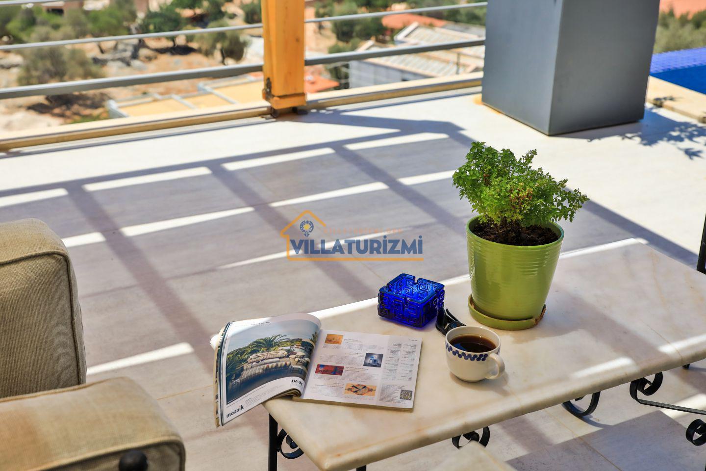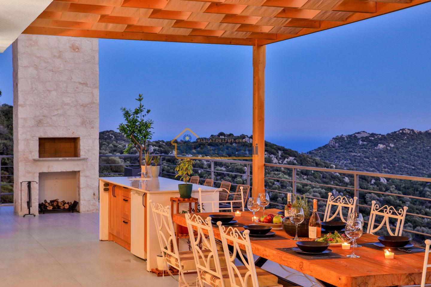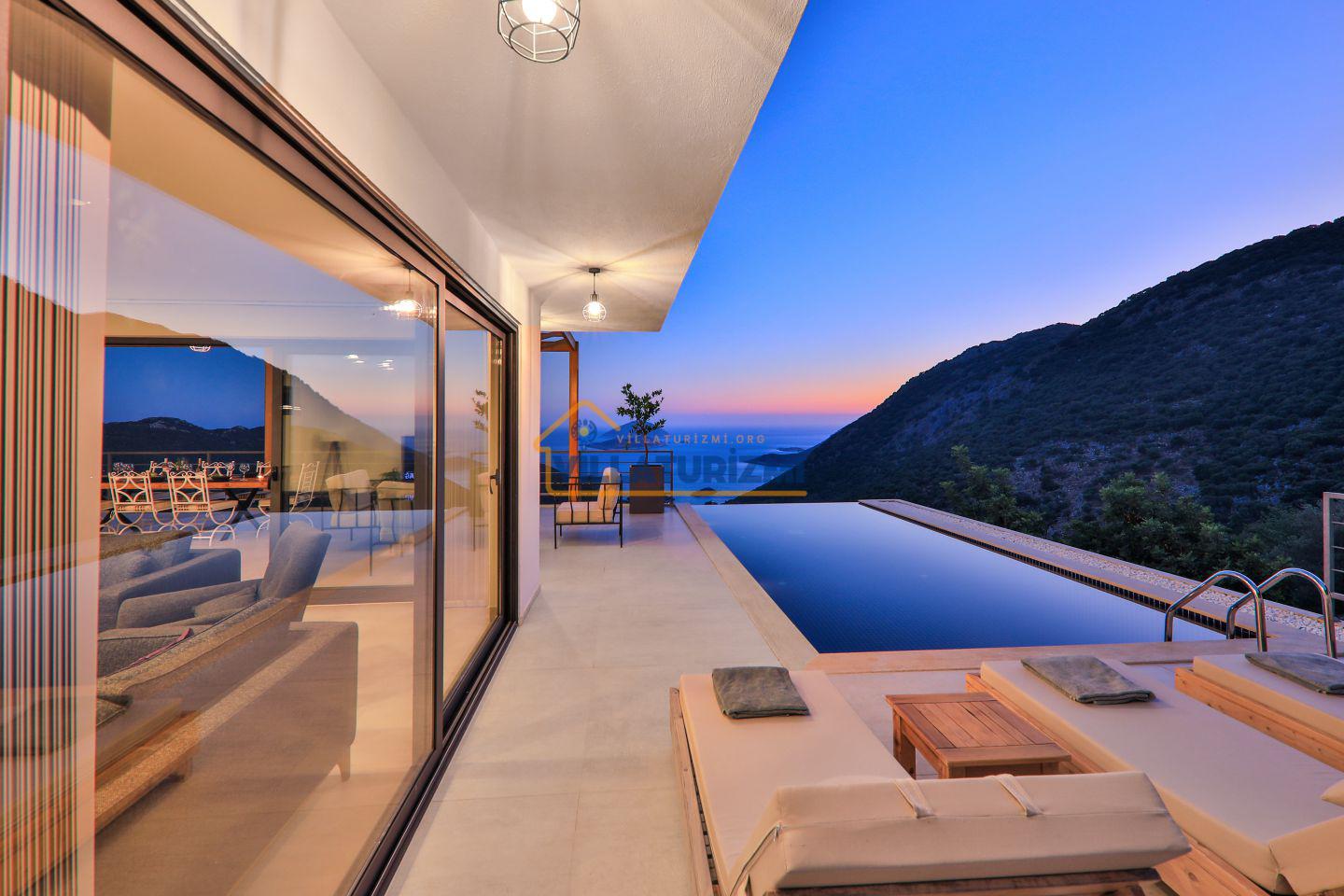 Geniş terası, sonsuzluk havuzu ve bir tarafı deniz bir tarafı bakir dağ manzarasıyla içinizi ısıtacaktır.