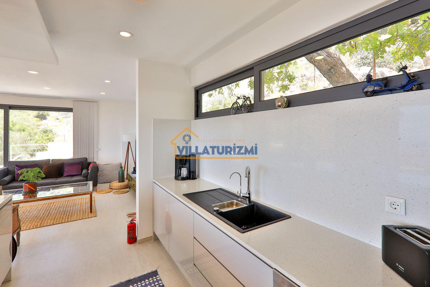 Mutfak: Tam donanımlı modern amerikan mutfak içesinde buzdolabı, ankastre set su arıtma cihazı, filtre kahve makinesi, ekmek kızartma makinesi, çay makinesi yemek masası ,yemek takımı ,tencere ve tava takımı ile ihtiyacınız olan tüm malzemeler bulunmaktadır.