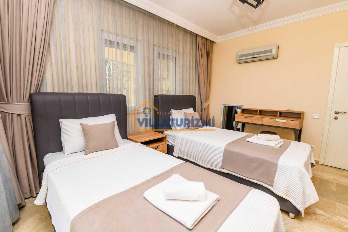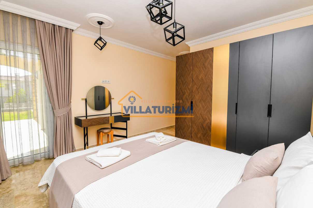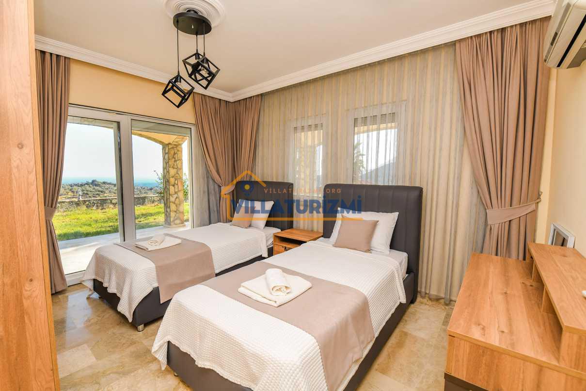 Toplamda 3 yatak odası bulunan villamızın tüm odaları ferah, yüksek standartlarda dizayn edilmiş olup, tüm odalardan panaromik deniz manzarası mevcuttur.