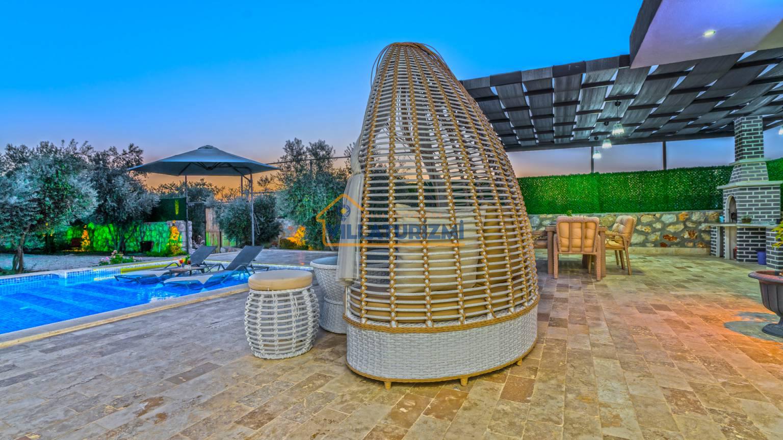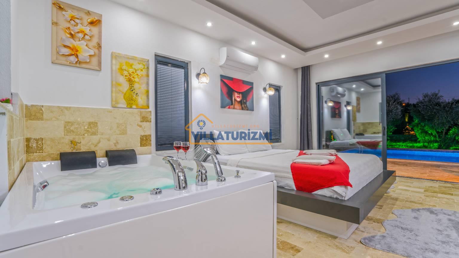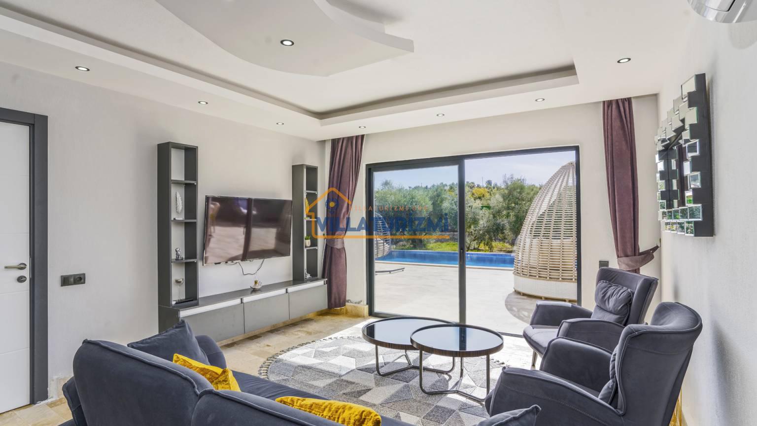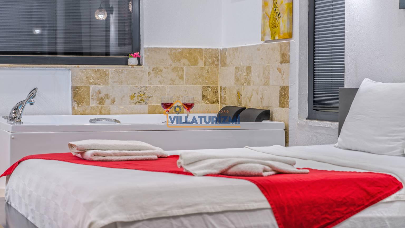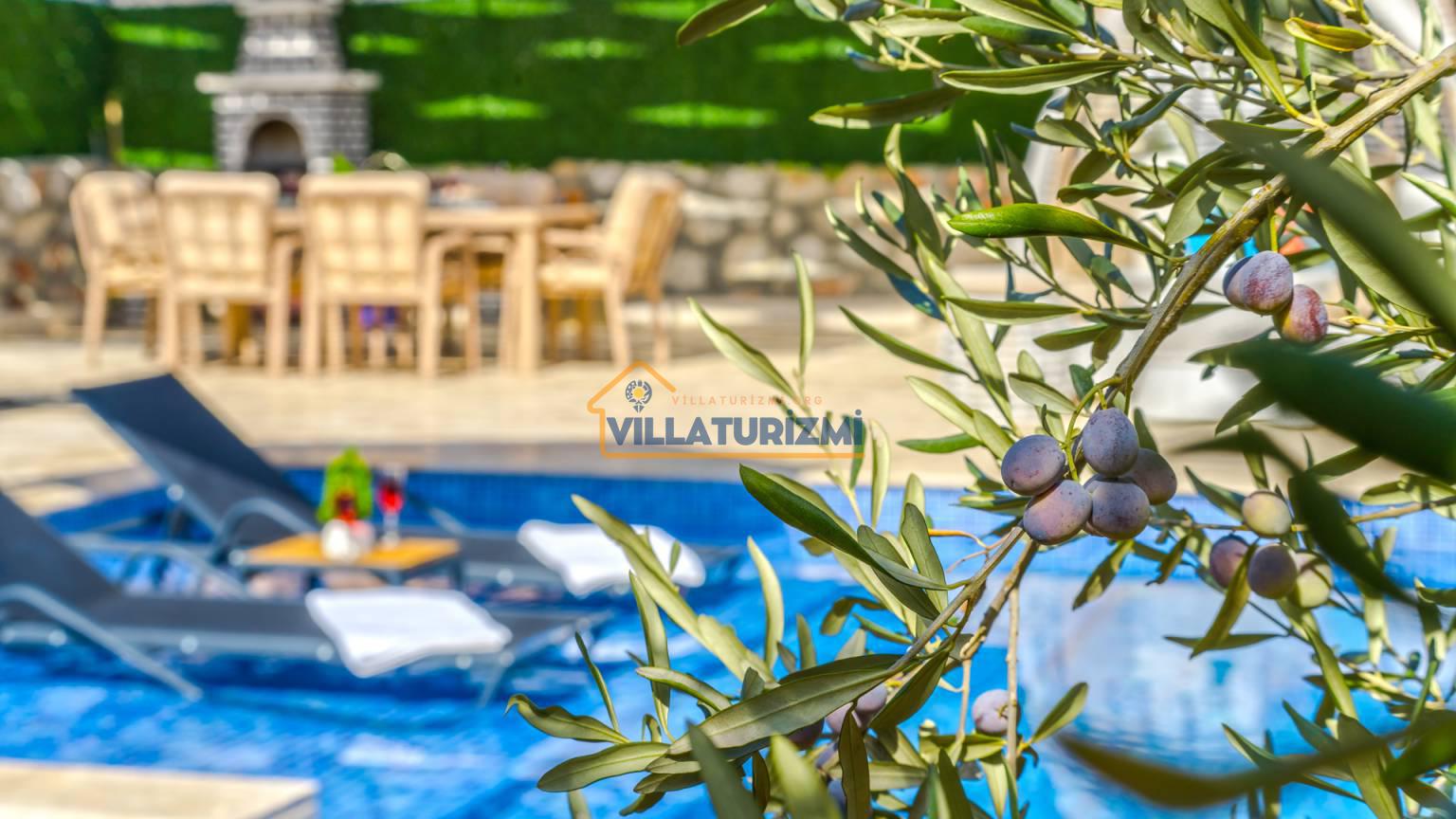 Villamızın süit yatak odasında, jakuzi bulunmaktadır. Villamız muhteşem bir doğa manzarasına sahiptir. Doğa ile iç içe bir ortamda geniş ve ferah bahçeye sahip bahçesinde zeytin ağaçları bulunan yapımı 2023 yılında bitmiş bir villadır.