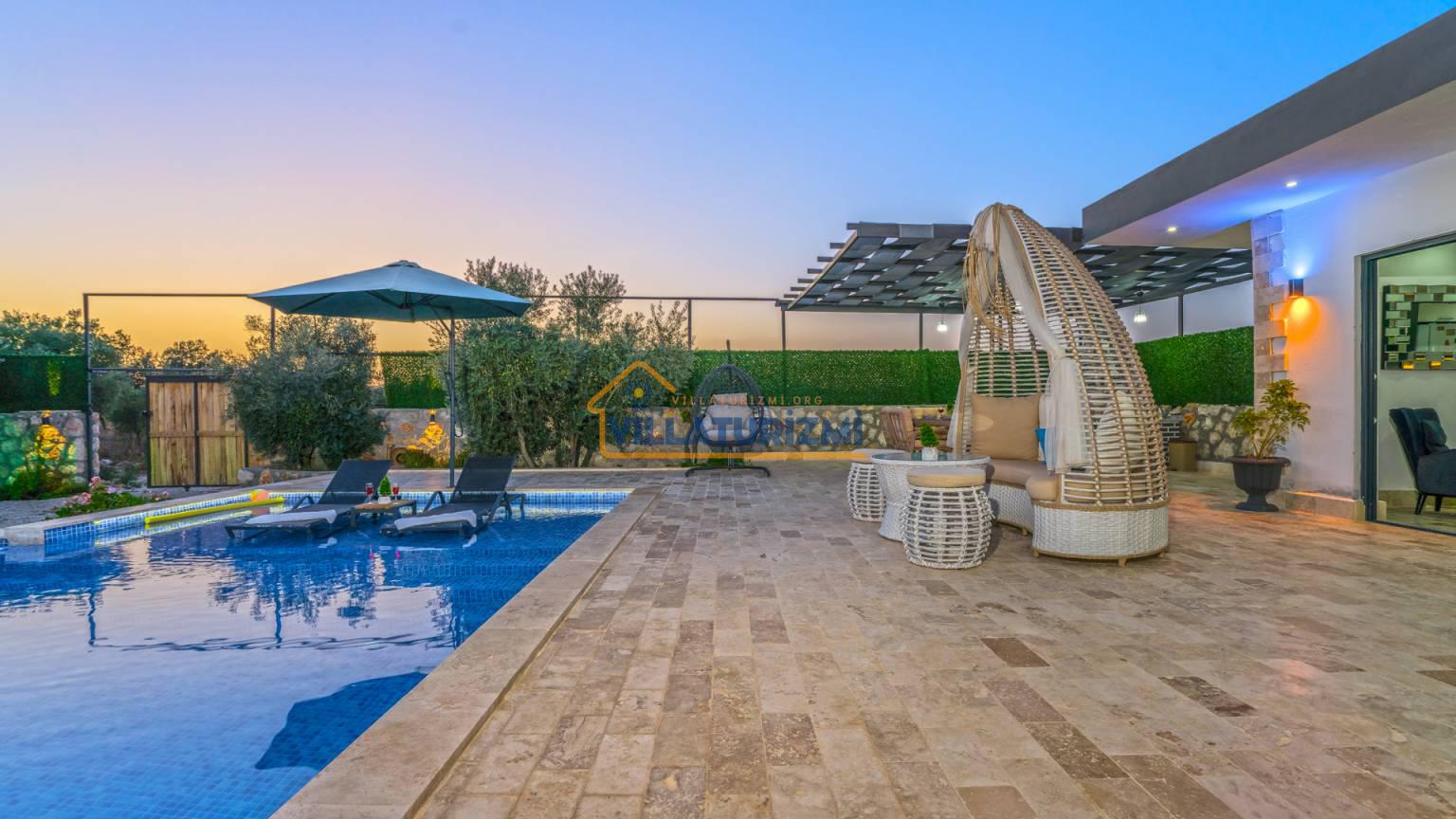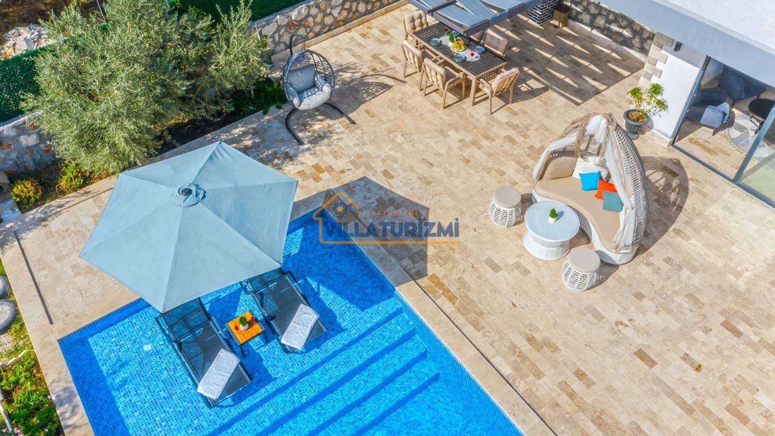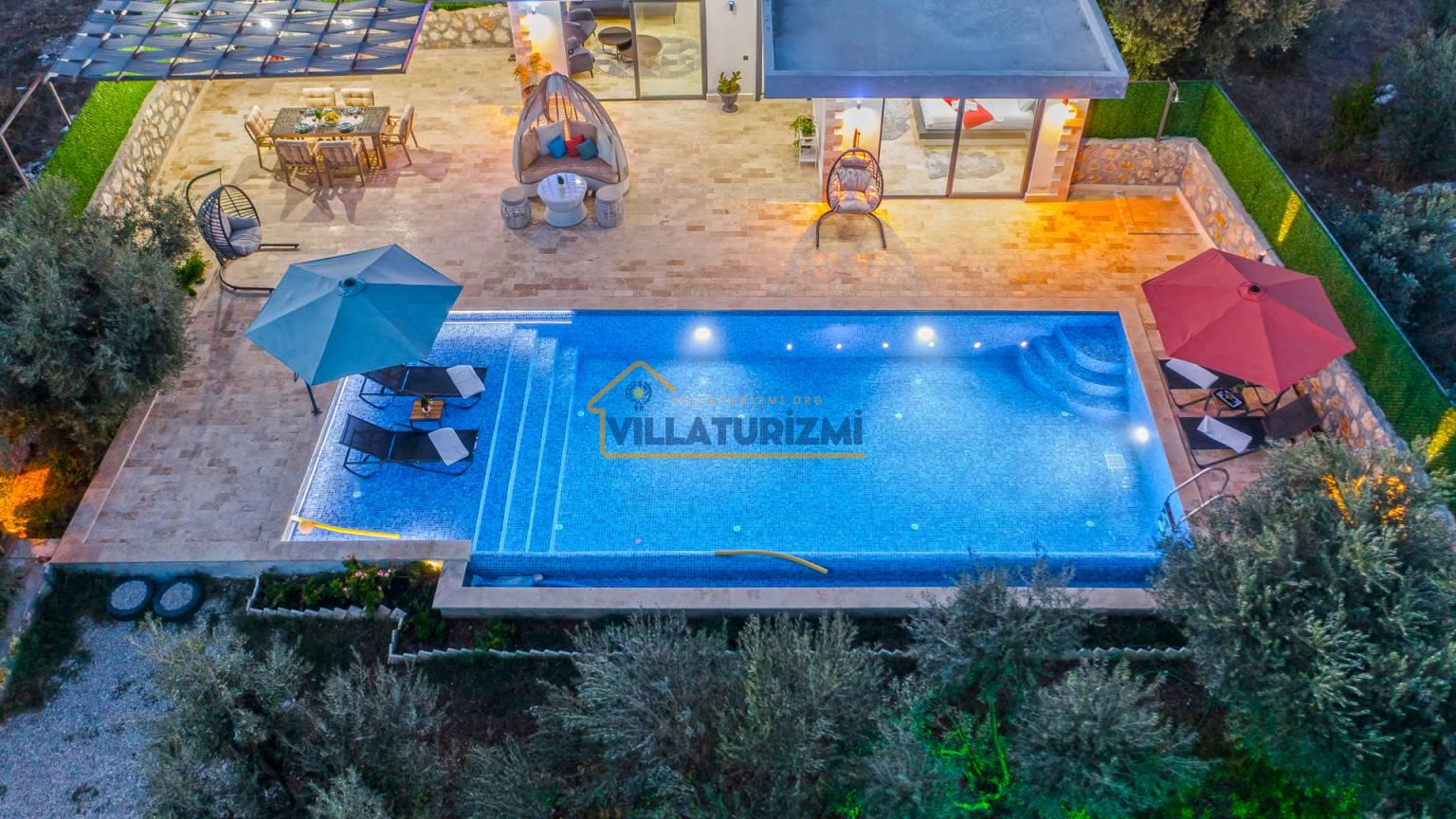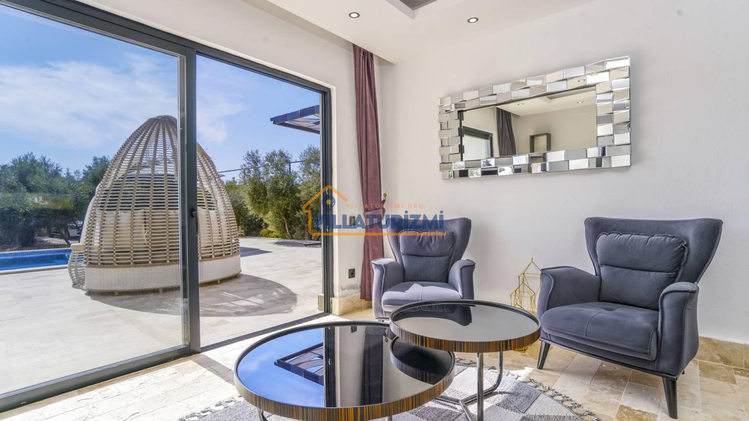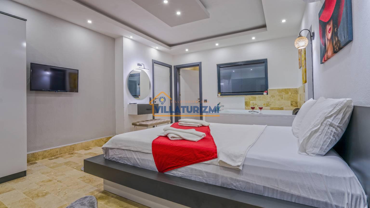Villamızın süit yatak odasında, jakuzi bulunmaktadır. Villamız muhteşem bir doğa manzarasına sahiptir. Doğa ile iç içe bir ortamda geniş ve ferah bahçeye sahip bahçesinde zeytin ağaçları bulunan yapımı 2023 yılında bitmiş bir villadır.