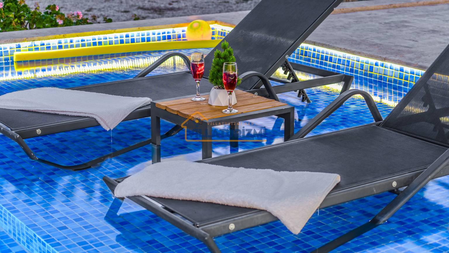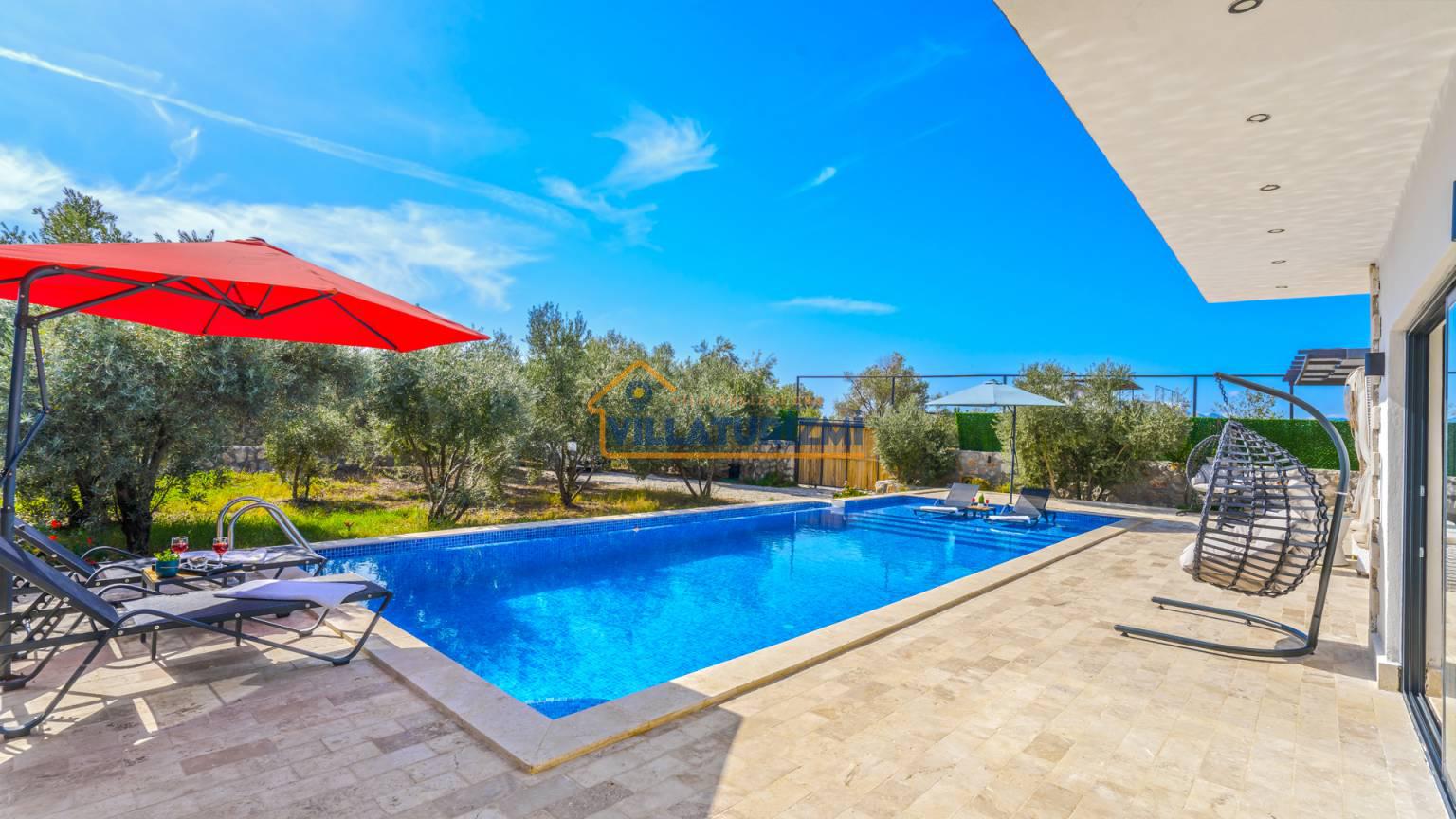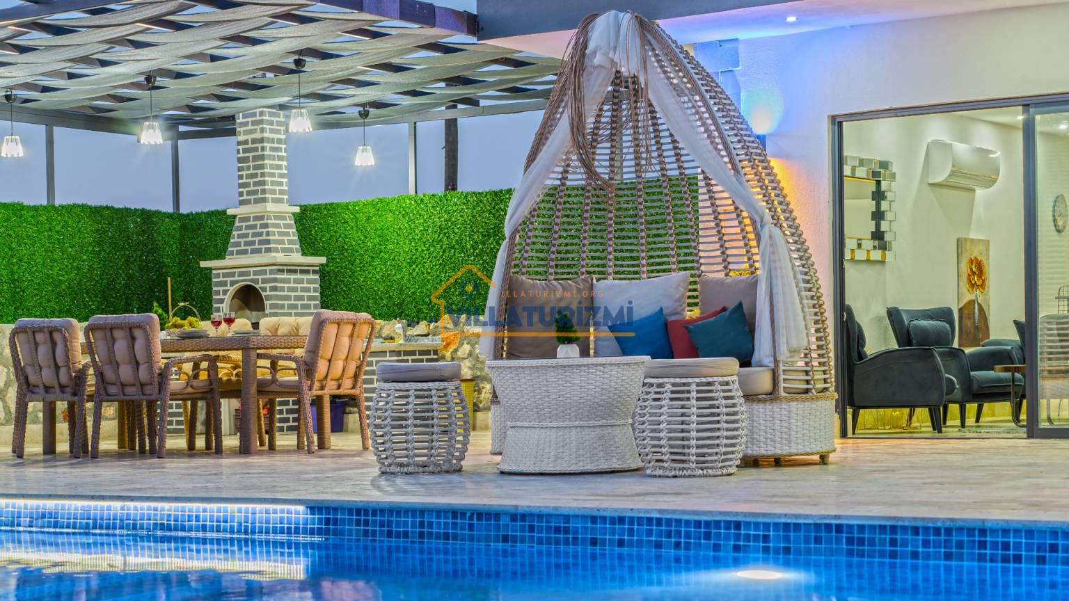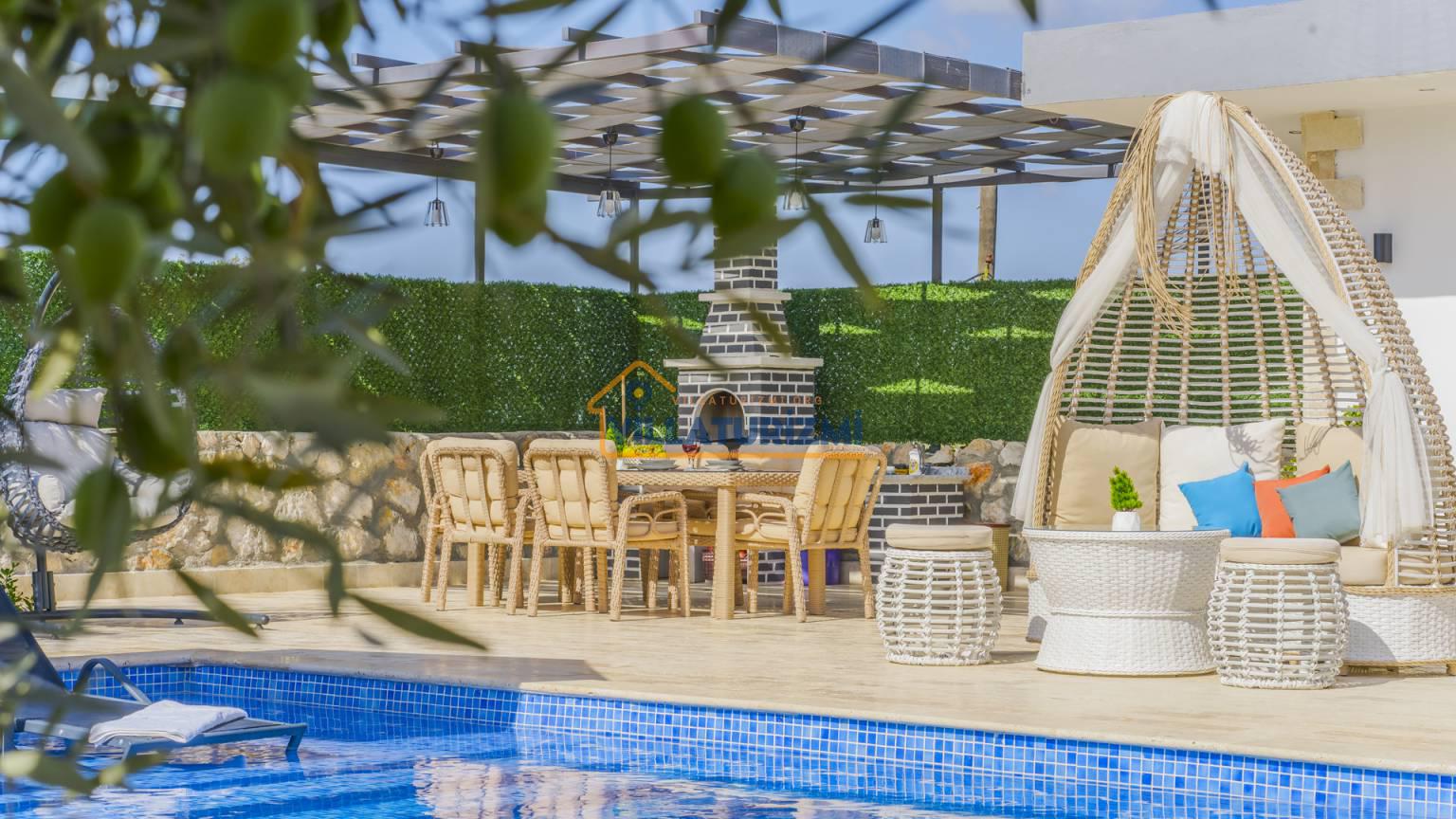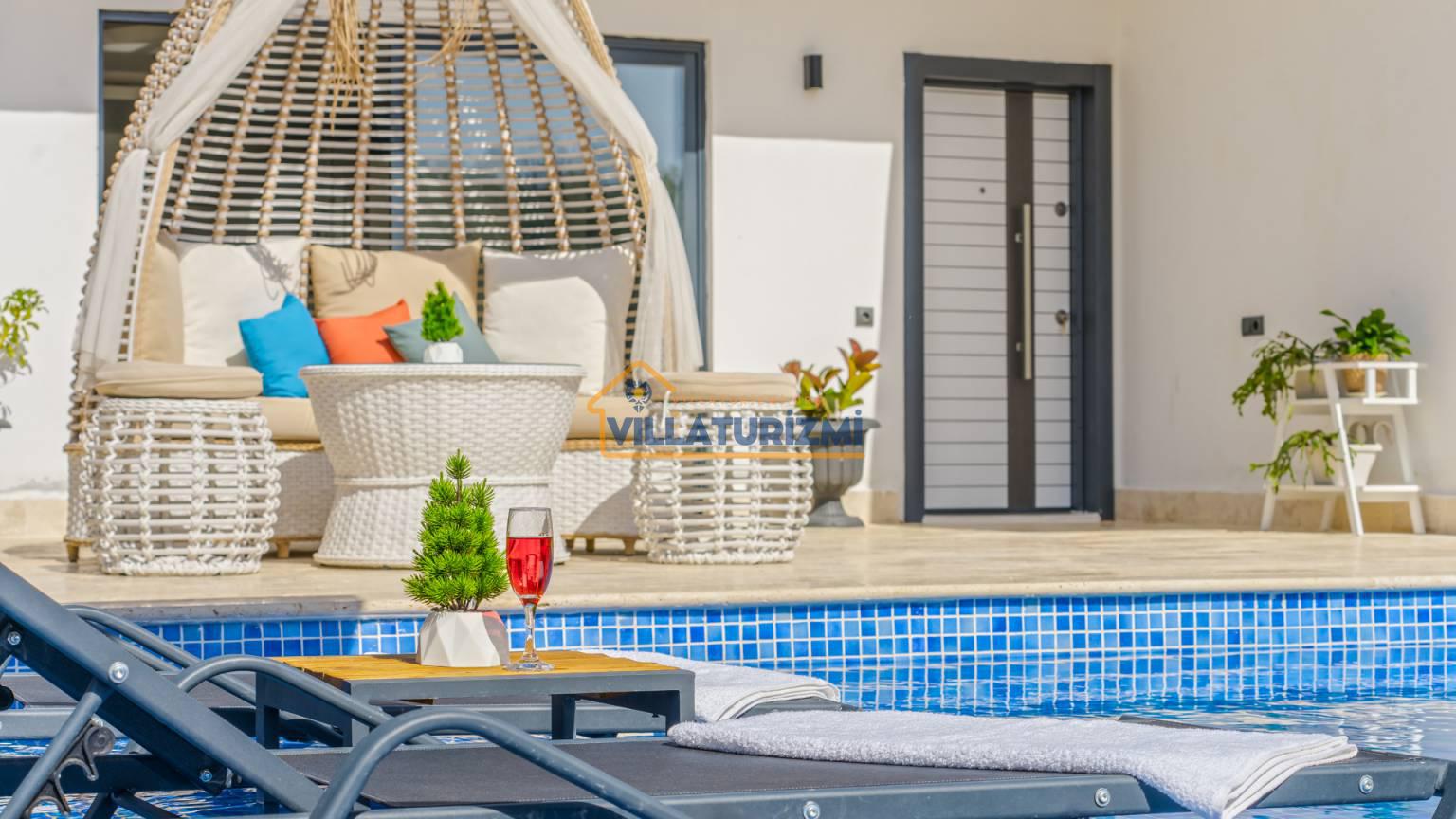 Villamızın süit yatak odasında, jakuzi bulunmaktadır. Villamız muhteşem bir doğa manzarasına sahiptir. Doğa ile iç içe bir ortamda geniş ve ferah bahçeye sahip bahçesinde zeytin ağaçları bulunan yapımı 2023 yılında bitmiş bir villadır.