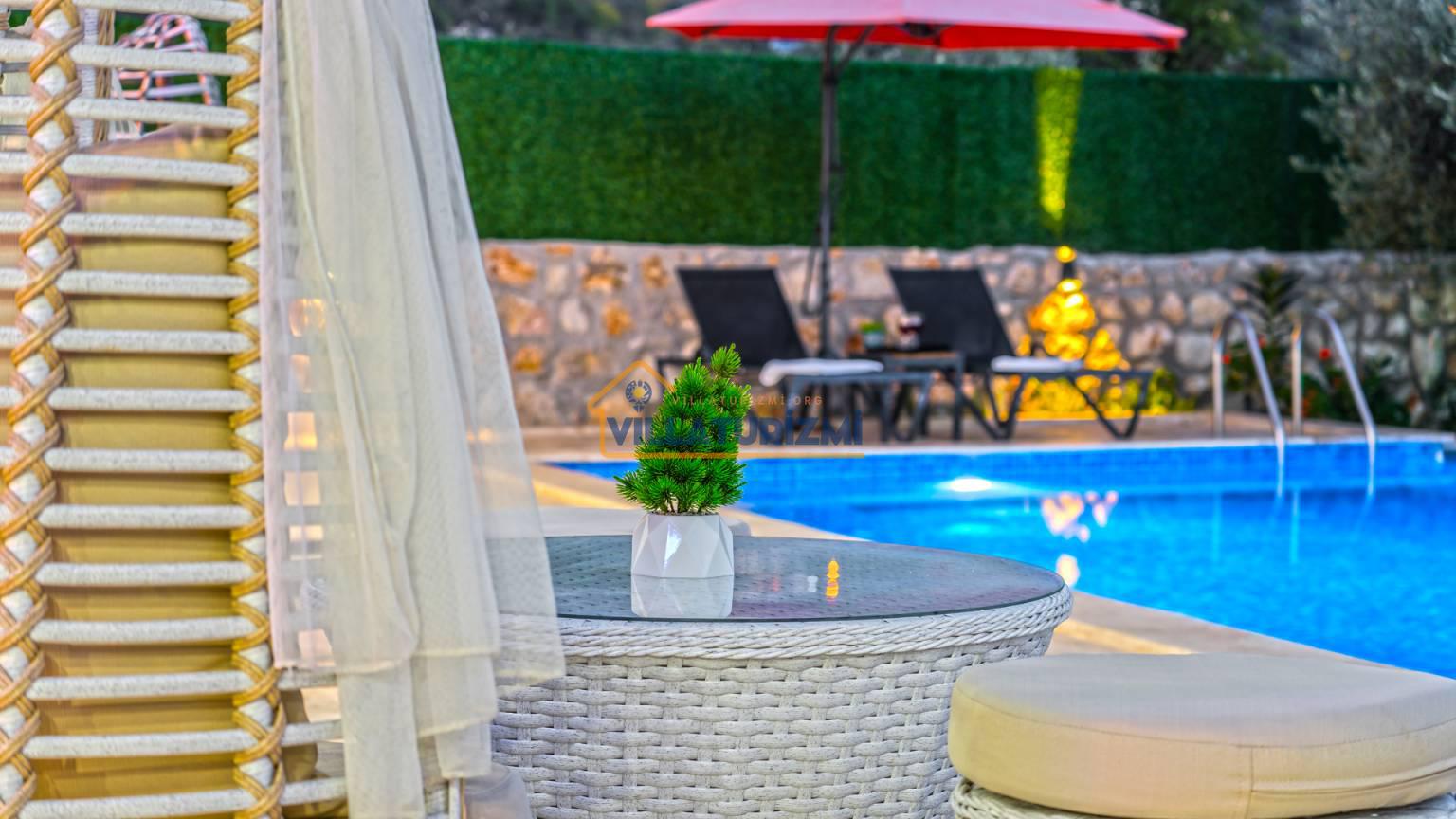 Aile ve balayı çiftlerinin gönül rahatlığı ile konaklayacağı, yazlık tatillerini veya balayı tatillerini gönüllerince yapabileceği villamız Kalkan'ın huzur dolu mevkisi Üzümlü'de siz değerli misafirlerimizin hizmetindedir.