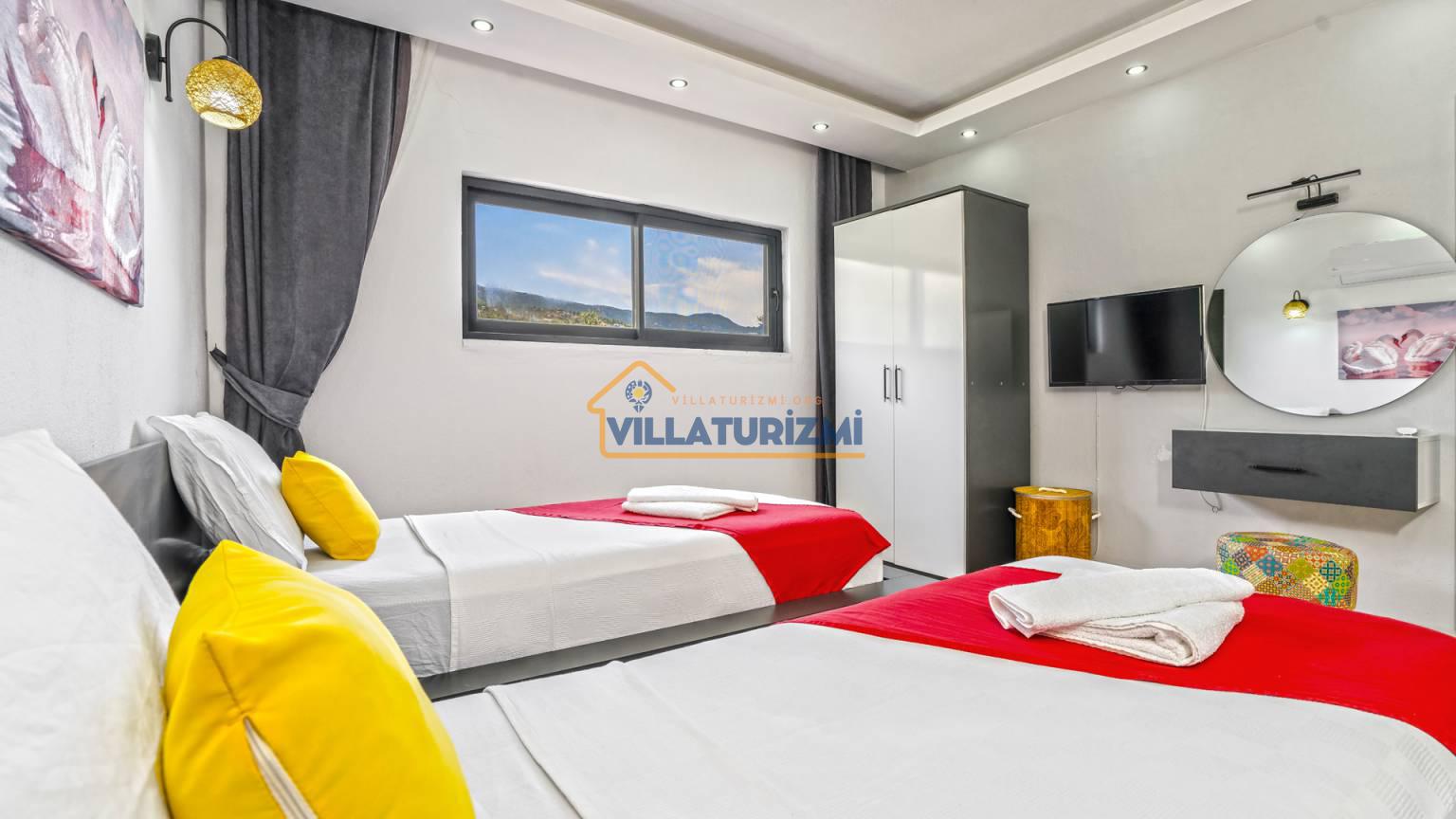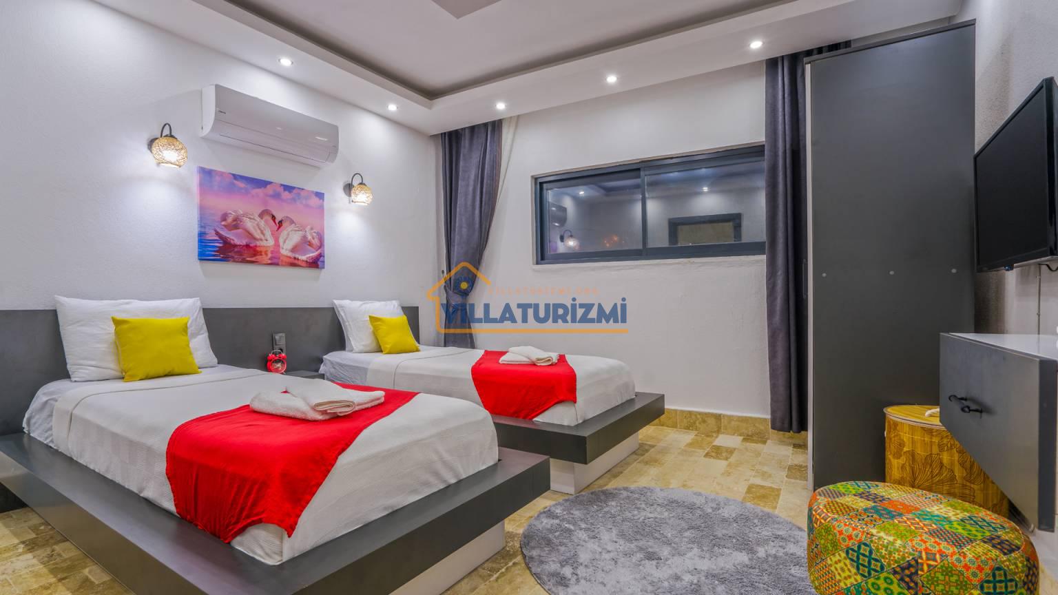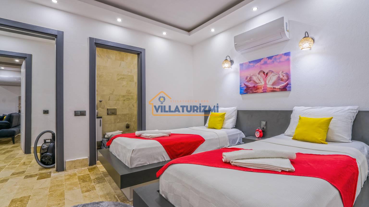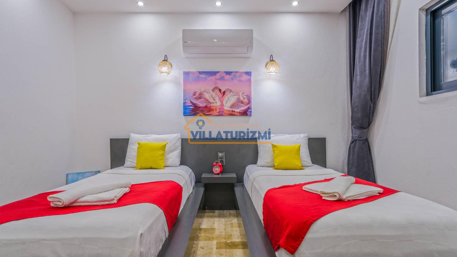 2. Yatak Odası: 2 tek kişilik yatak, klima, komodin, makyaj masası, elbise dolabı ve banyo tuvalet bulunmaktadır.