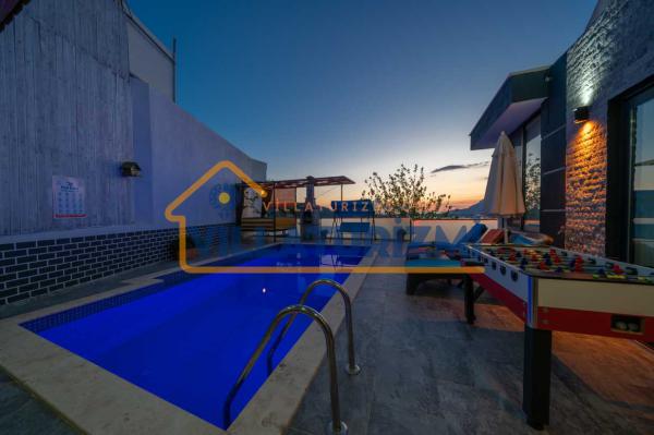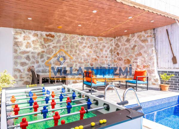 Villa'nın en dikkat çekici özelliklerinden biri özel yüzme havuzunun bulunmasıdır. Misafirler, bu havuzda ailenizle ya da sevdiklerinizle keyifli anlar geçirebilir; güneşin altında serinlemek için mükemmel bir fırsat yakalayabilirler. Ayrıca havuz terasında bulunan langırt, misafirlerin eğlenceli vakit geçirmelerini sağlayacak bir diğer olanak olarak öne çıkmaktadır. Ailecek yapacakları oyunlar, tatilin unutulmaz anıları arasında yer alacaktır.