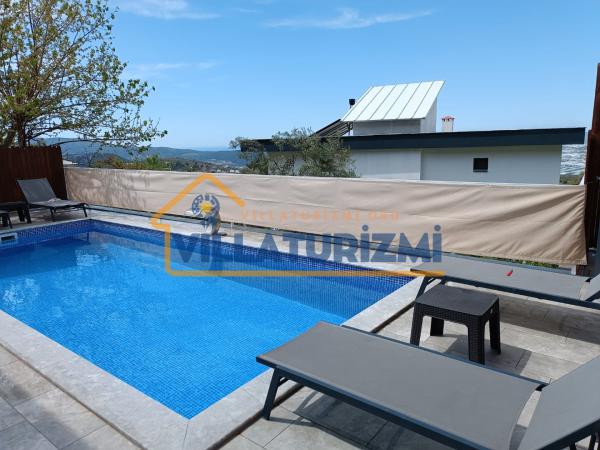 Kiralık Villanın en dikkat çekici özelliklerinden biri, özel yüzme havuzudur. Sıcak yaz günlerinde serinlemek ve güneşin tadını çıkarmak isteyen misafirler için havuz, vazgeçilmez bir aktivite alanı sunar. Havuzun etrafındaki geniş bahçe terası ise güneşlenmek, kitap okumak veya sevdiklerinizle sohbet etmek için mükemmel bir ortam oluşturur. Terasın genişliği, kalabalık grupların bile rahatça vakit geçirebilmesine imkan tanır.