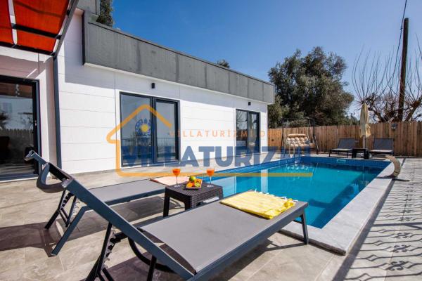 Bahçe: Villamızın bahçesinde şezlong takımı, şemsiye, pergola, masa takımı, salıncak yatak, barbekü bulunmaktadır.