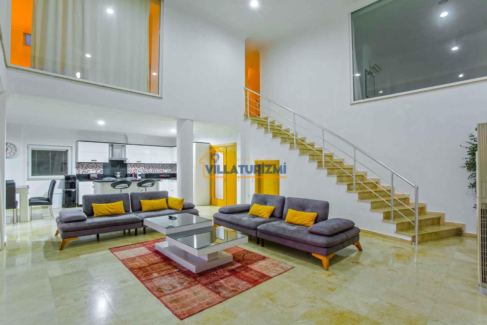 Salon : Salonumuzda oturma grubu, klima, LCD TV, sehpa, uydu alıcı bulunmaktadır. Havuz terasına çıkış yapılabilmektedir.